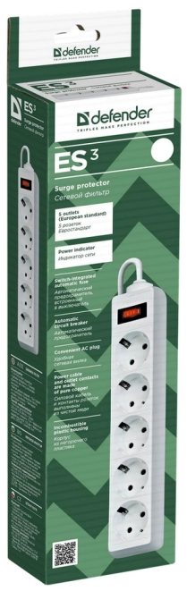 Сетевой фильтр Defender ES - устройство начального уровня, экономичный вариант решения проблемы защиты электропитания. Предназначен для подключения широкого спектра бытовой и электронной техники, включая чайники и электронагреватели.