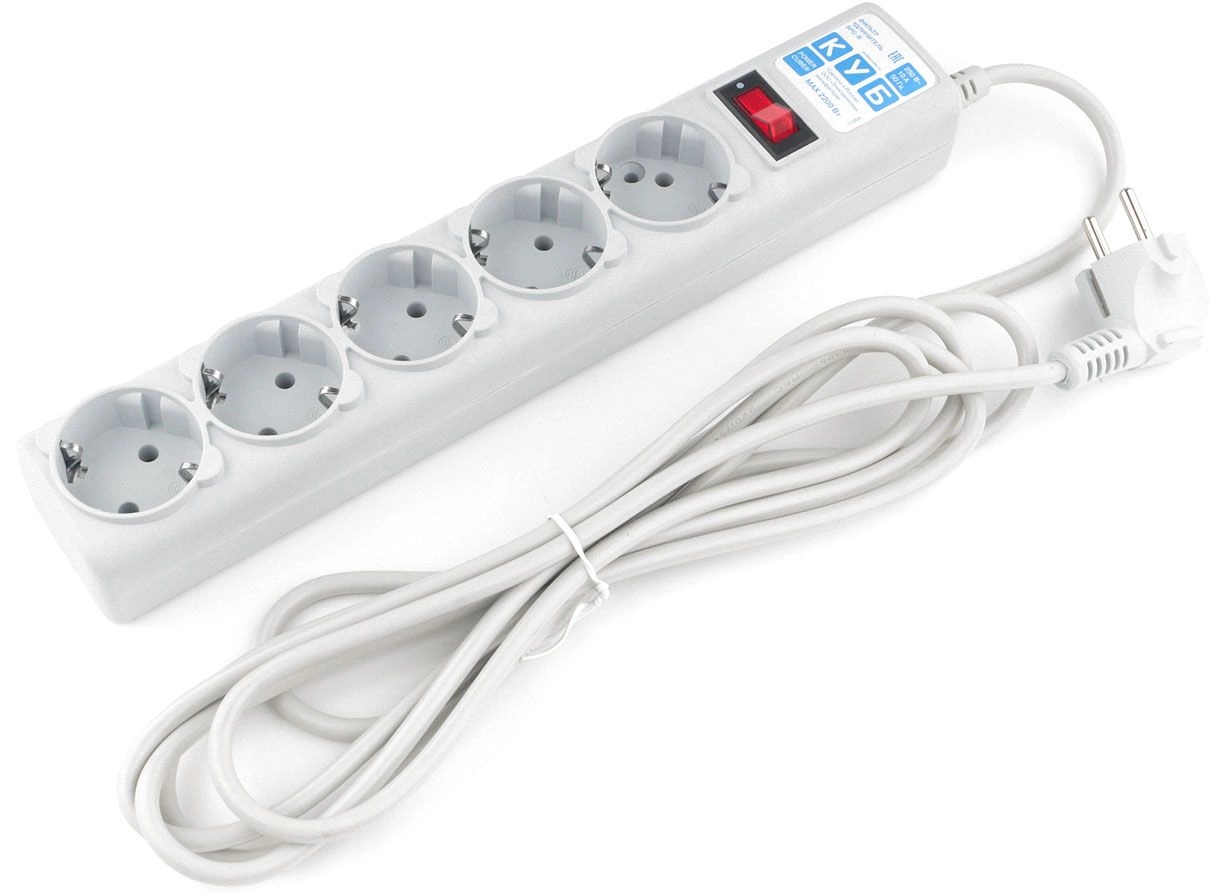 Фильтр-удлинитель Power Cube B 3.0 м 5 розеток (белый) 10А/2,2кВт