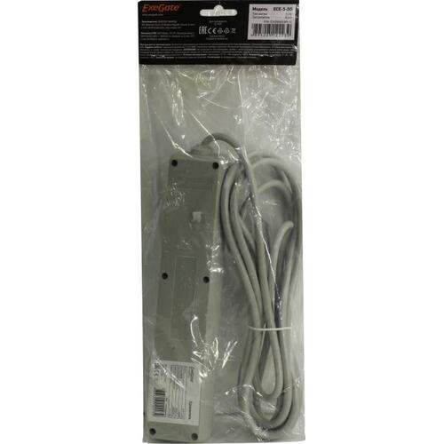 Сетевой фильтр Exegate EX285823RUS Удлинитель ExeGate ECE-5-3G (5 евророзетки с заземлением, 3м, серый)