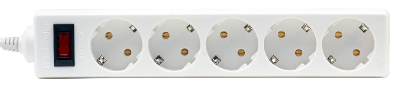 Удлинитель с сетевым фильтром Defender 99482 ES 3 3 м, белый, 5 розеток