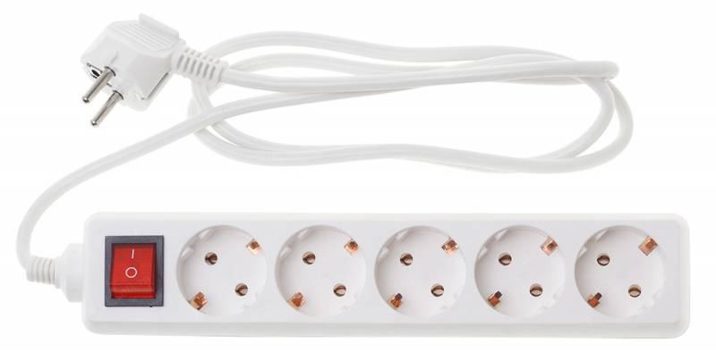 Сетевой удлинитель Buro BU-PS5.1/W 1.5м (5 розеток) белый (пакет ПЭ) (продается кратно 10 шт.)