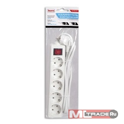 Сетевой удлинитель Buro BU-PS5.3/W 3м (5 розеток) белый (пакет ПЭ) (продается кратно 10 шт.)