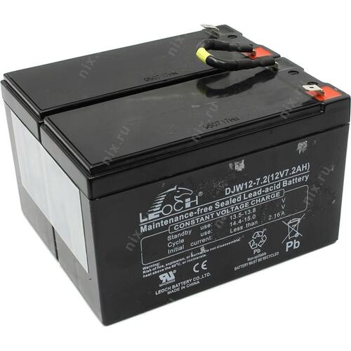 2 аккумулятора 12В, 7.2 Ач. Свинцово-кислотные, герметичные, не требуют обслуживания.