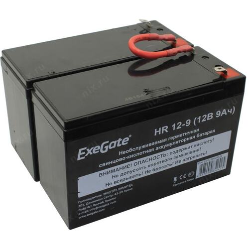 2 аккумулятора 12В, 9 Ач. Свинцово-кислотные, герметичные, не требуют обслуживания.