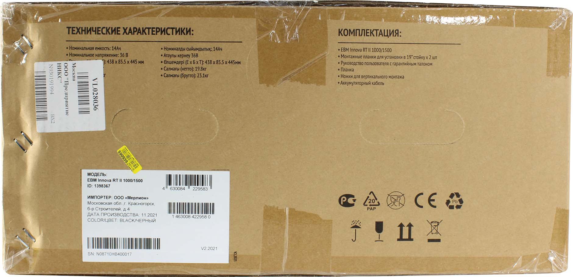 Батарейный модуль предназначен для использования только с соответствующими ему ИБП: дополнительный батарейный модуль EBM INNOVA RT II 1000/1500 подходит для ИБП INNOVA RT II 1000 ВА и 1500 ВА. Возможно подключение до 4-х батарейных модулей одновременно