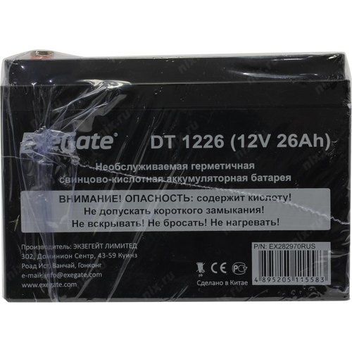 Батареи Exegate EX282970RUS Аккумуляторная батарея DT 1226 (12V 26Ah, клеммы F3 (болт М5 с гайкой))