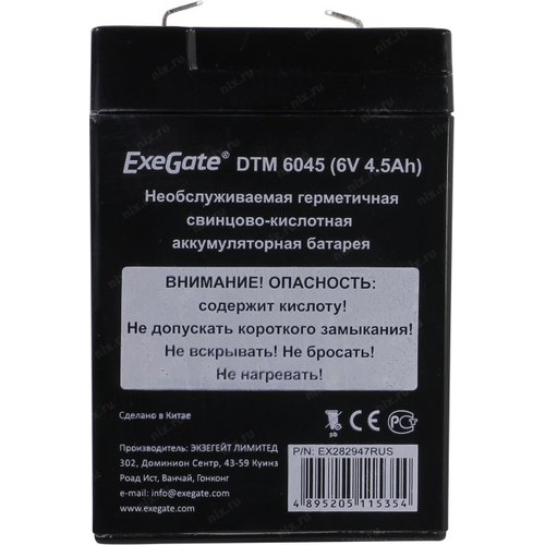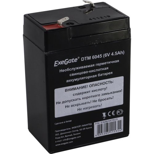 Батареи Exegate EX282947RUS Аккумуляторная батарея DTM 6045 (6V 4.5Ah, клеммы F1)