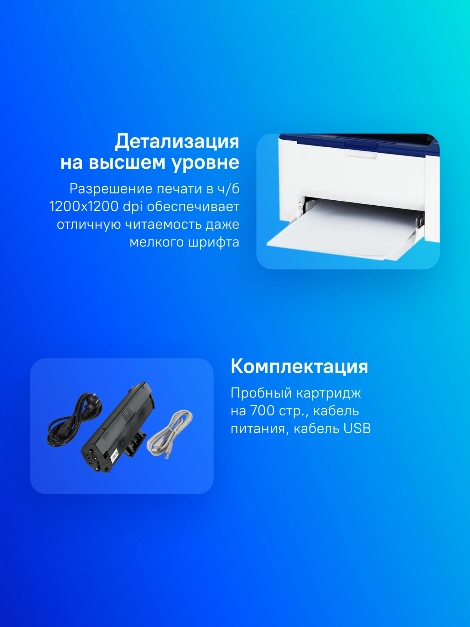 Пробный картридж, кабель питания, кабель USB