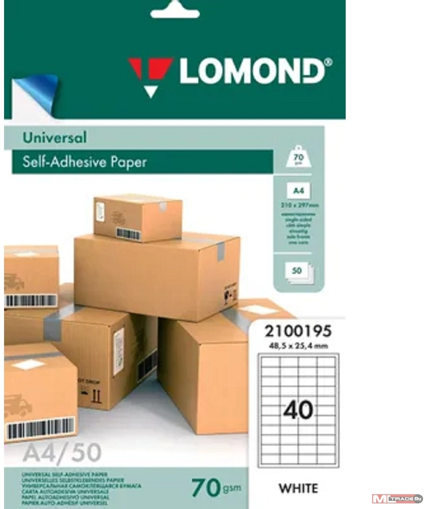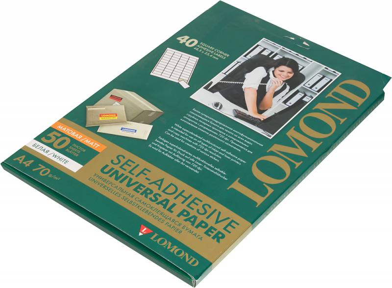 Бумага LOMOND 2100195-70 (A4, 50 листов, 40 частей, 70 г/м2) бумага универсальная самоклеящаяся, белая