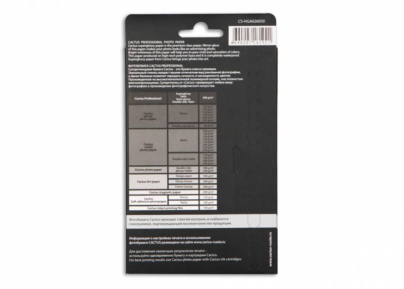 Фотобумага Cactus Prof CS-HGA6260500 A6/