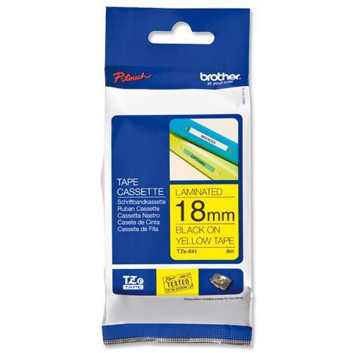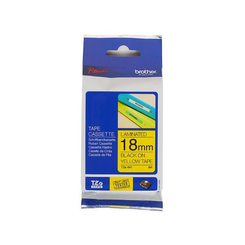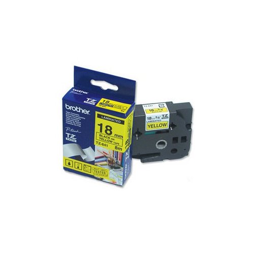 Этикетка Brother Наклейка ламинированная TZE-641 (18мм черн шрифт на жёлтом фоне, длина 8м)