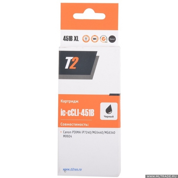 Расходные материалы T2 CLI-451BK XL Картридж (IC-CCLI-451BK) для Canon PIXMA iP7240/MG5440/6340/MX924, черный, с чипом, 11 мл.