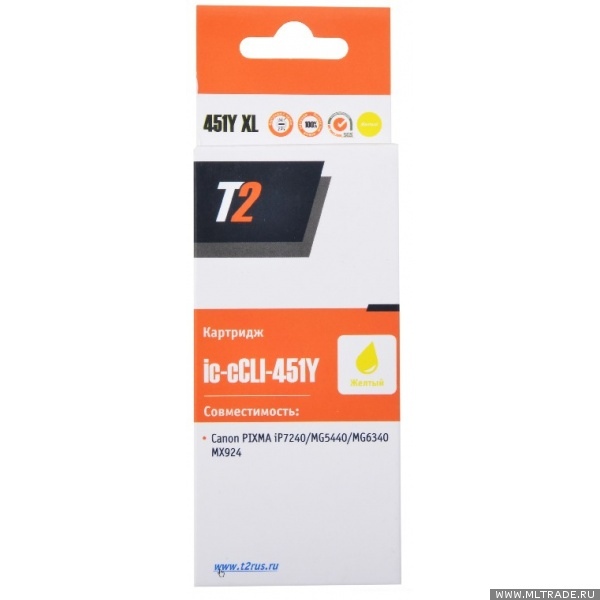 Расходные материалы T2 CLI-451Y XL Картридж (IC-CCLI-451Y) для Canon PIXMA iP7240/MG5440/6340/MX924, желтый, с чипом