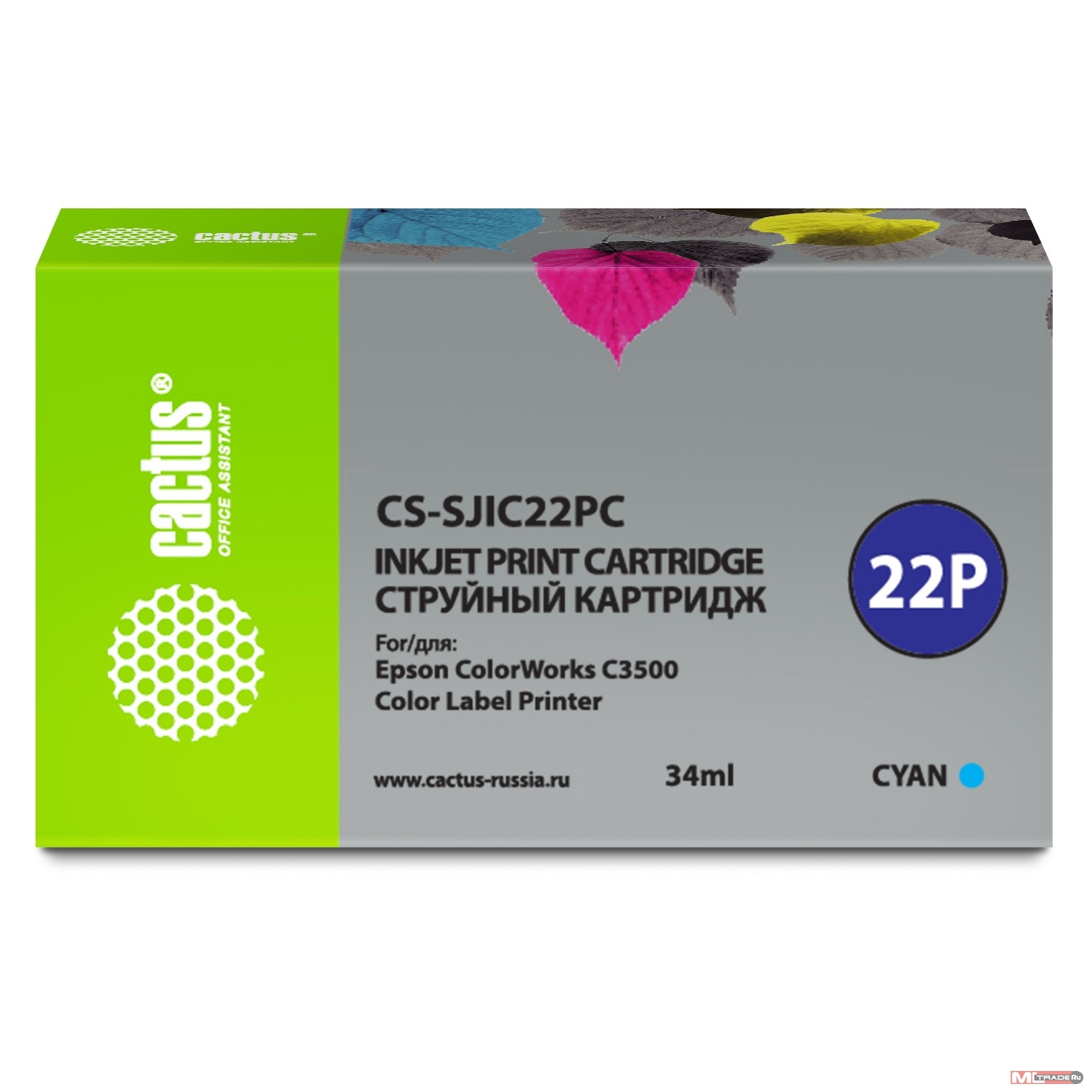 Картридж струйный Cactus CS-SJIC22PC C33S020602 голуб.пигм. (34мл) для Epson ColorWorks C3500 с чипом