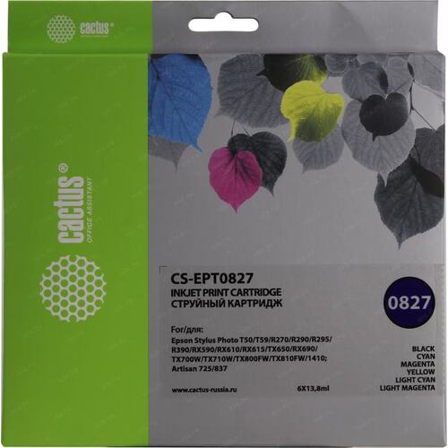 Картридж струйный Cactus CS-EPT0827 черный/голубой/пурпурный/желтый/светло-голубой/светло-пурпурный набор (82.8мл) для Epson Stylus Photo R270/290/RX590 с чипом