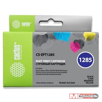 Картридж струйный Cactus CS-EPT1285 T1285 черный/голубой/пурпурный/желтый набор (31мл) для Epson Stylus SX125/SX425W/SX420W/S22/Office BX305F/BX305FW с чипом
