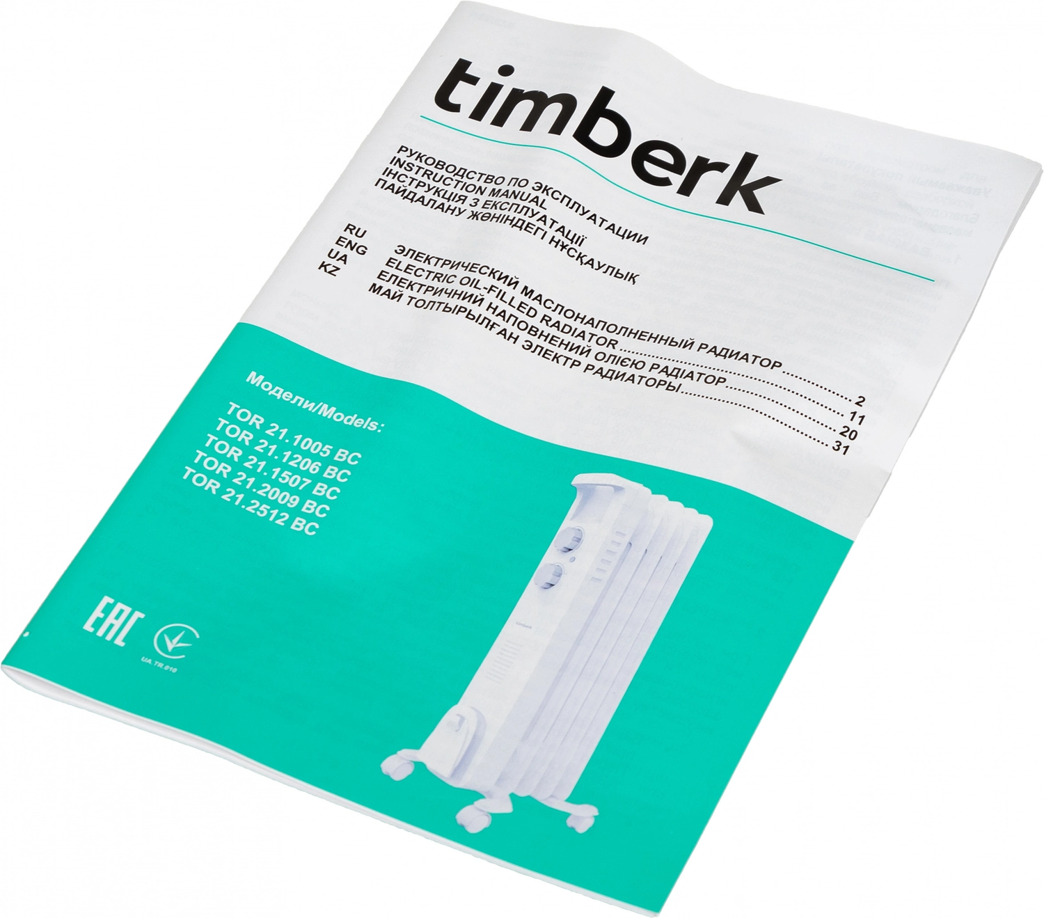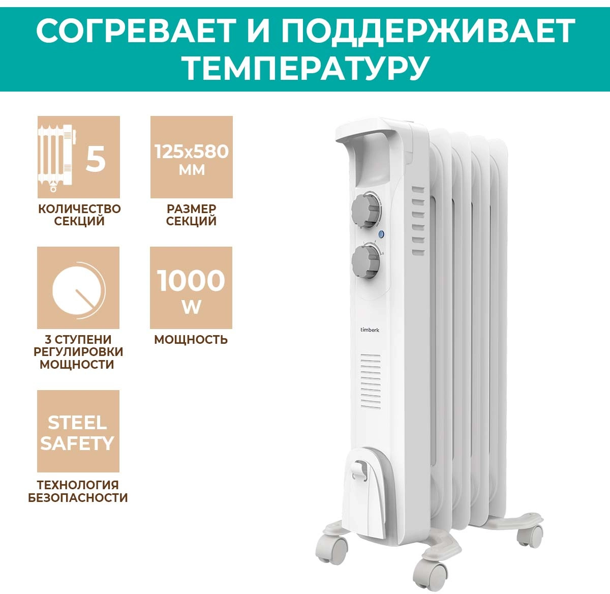 Радиатор масляный Timberk TOR 21.1005 BC 1000Вт белый