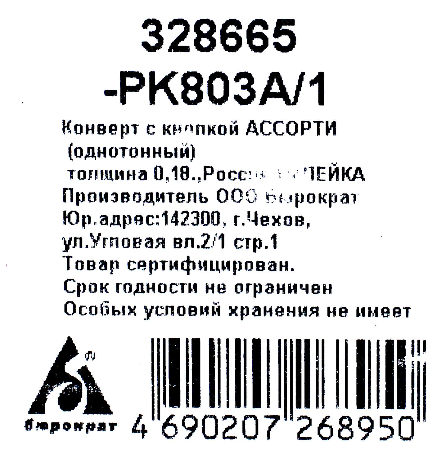 Расх. материал PK803A Конверт с кнопкой (однотонный) толщина 0, 18 (цена за 1шт, в уп-ке 12шт)