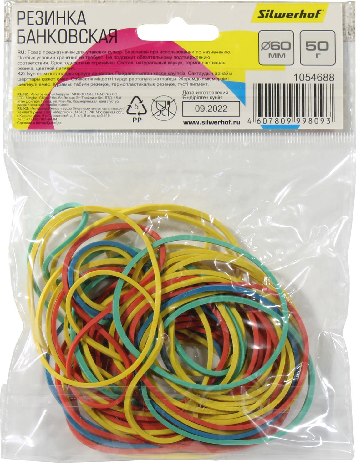 Резинки для купюр Silwerhof 189014 d=60мм толщиной 2мм 50 гр разноцветные
