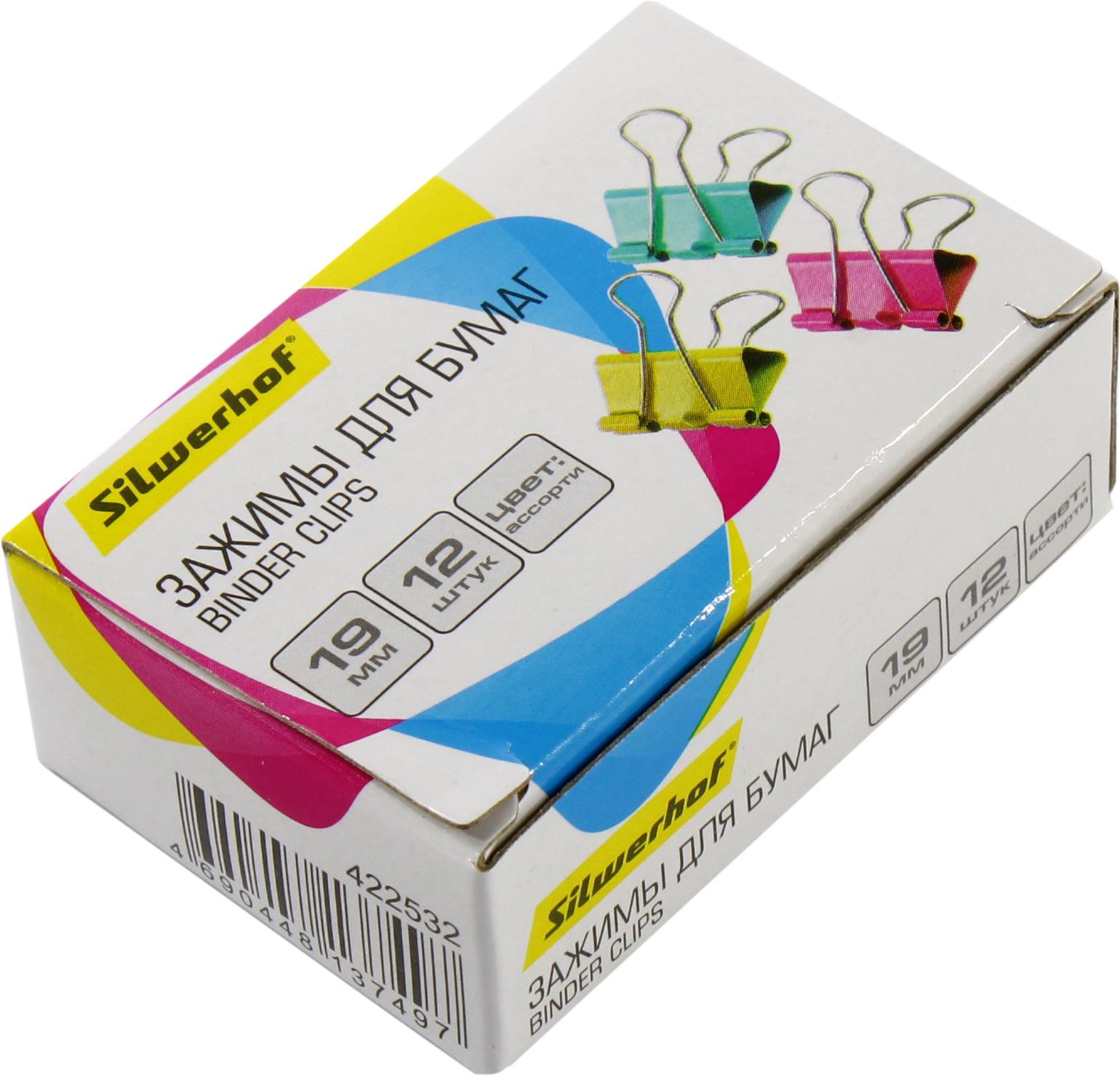Расх. материал Silwerhof < 422532> Зажимы для бумаг (19мм, уп-ка 12шт)