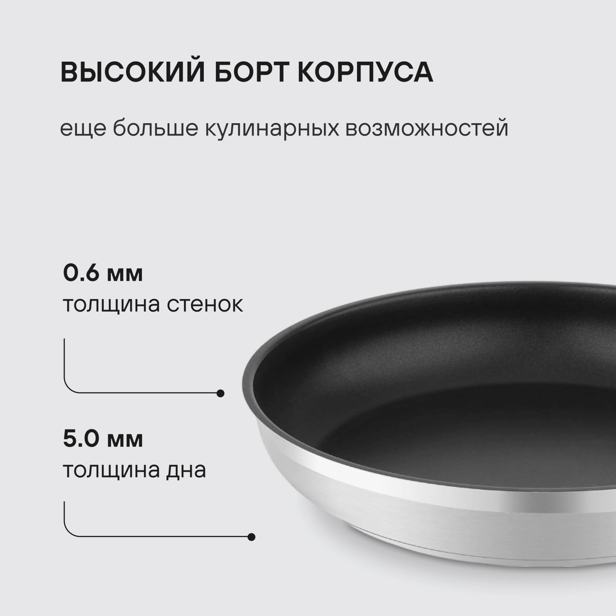 Технология: тройное вштампованное, а затем вплавленное дно без воздушных полостей. Преимущества: комбинированная полировка корпуса; Eclipse® - усиленное трехслойное антипригарное покрытие для интенсивного использования. Упаковка: картонный рукав.