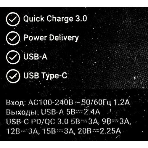 Блок питания TopON TOP-GaN-65WB автоматический 65W 5V-20V 3.25A от бытовой электросети LED индикатор 103205
