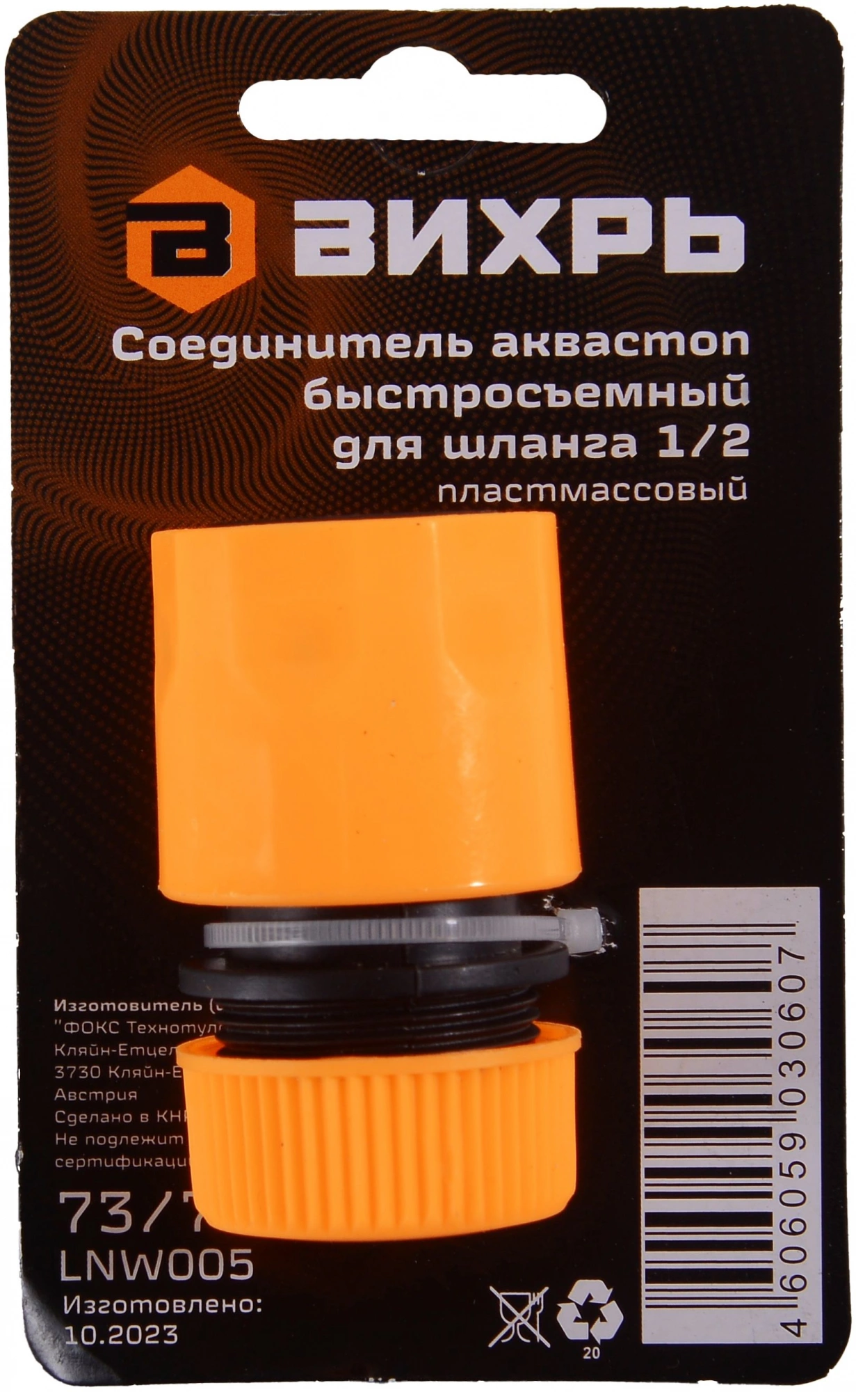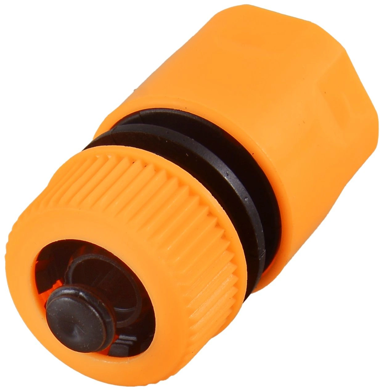 Соединитель аквастоп быстросъемный для шланга 1/ 2. Функция аквастоп позволяет перекрывать поток воды при отсоединении шланга от пистолета – распылителя.