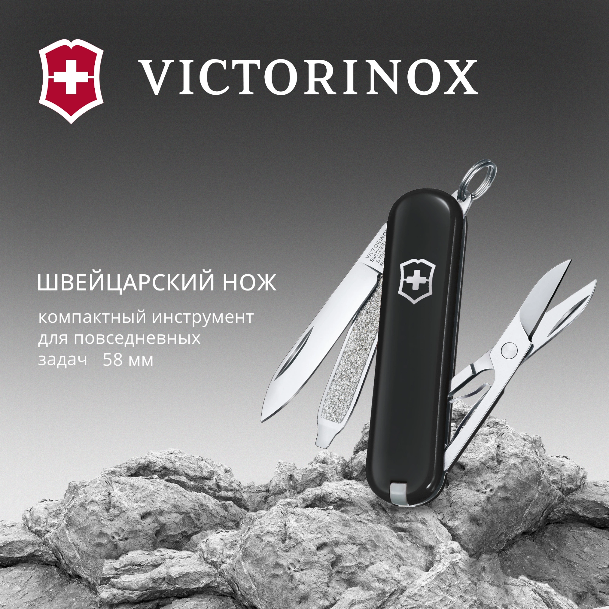 Нож перочинный Victorinox Classic Brilliant Carbon (0.6221.90) 58мм 5функц. черный/
