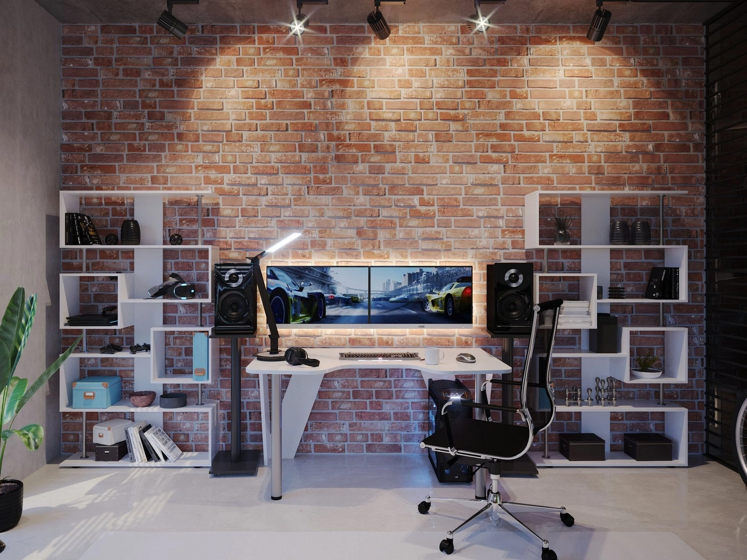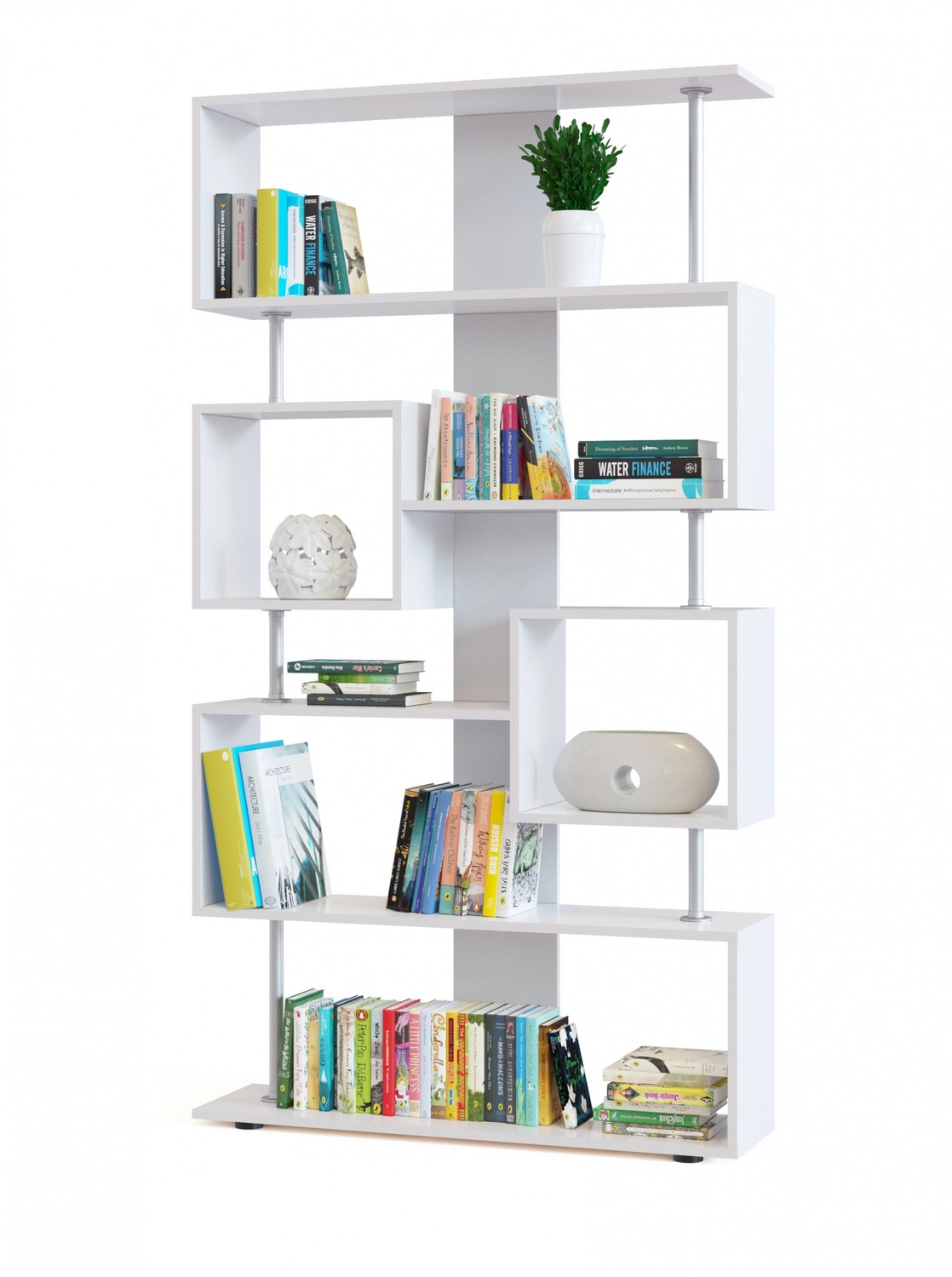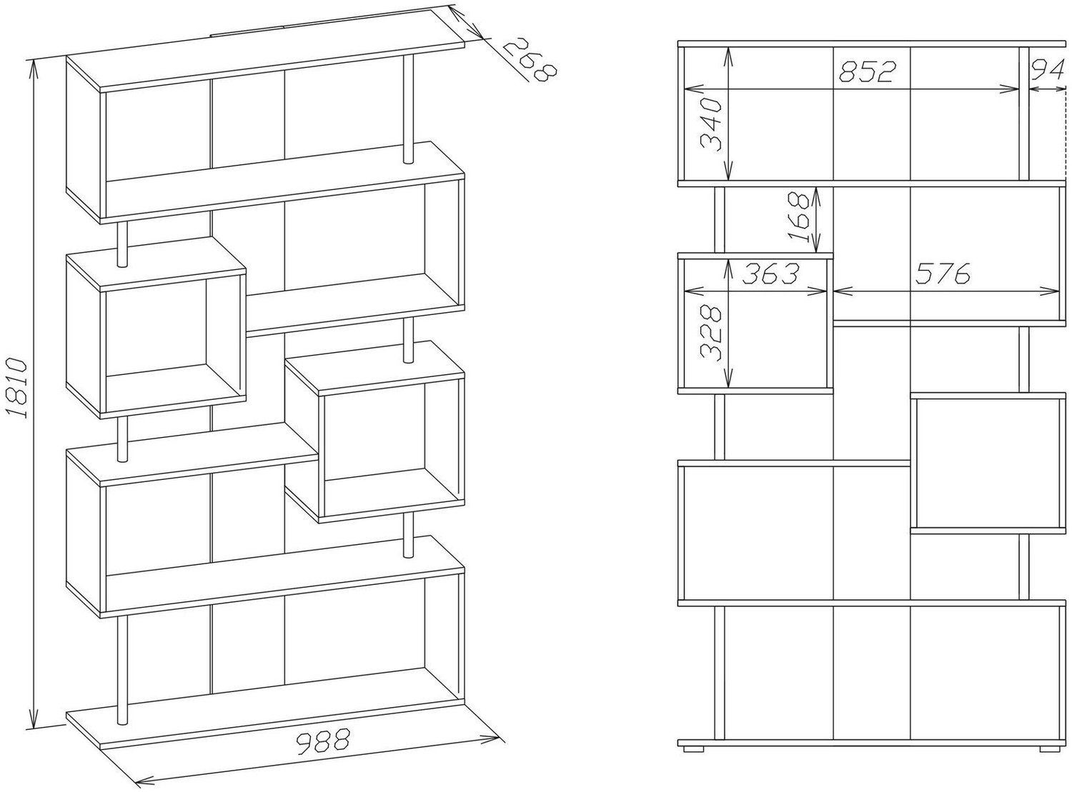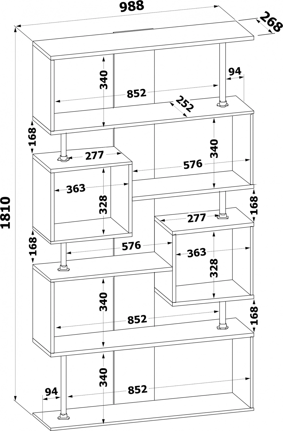 Открытый многофункциональный стеллаж, сделанный в необычной геометрии полок, которые будто парят в воздухе благодаря металлическим элементами между ними. Он станет полезной частью гостиной, спальни, детской комнаты, квартиры-студии или офисных помещений.