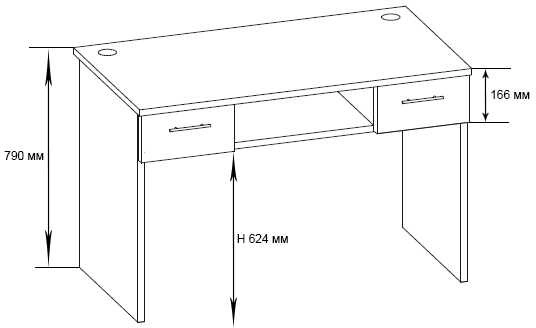 два выдвижных ящика и открытая ниша под столешницей