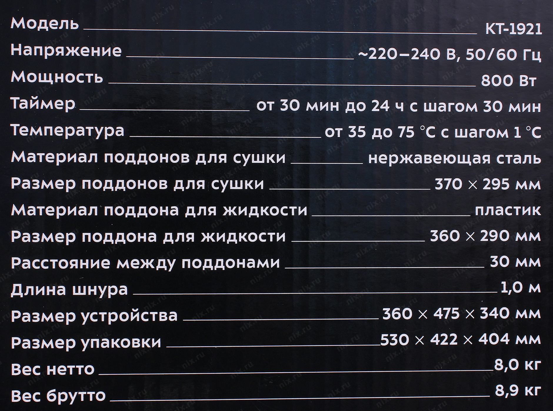 Сушка для фруктов и овощей Kitfort КТ-1921 9под. 800Вт черный