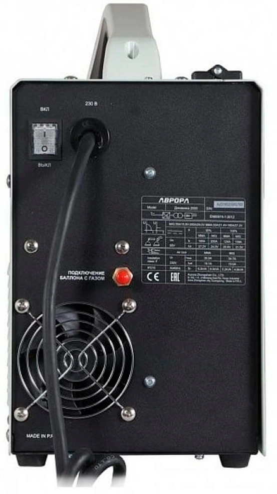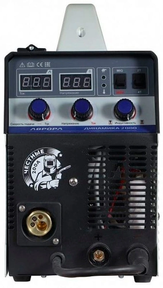 Сварочный аппарат, руководство по эксплуатации, кабель заземления с зажимом массы, 2.5 м.; горелка для полуавтоматической сварки, 3 м.; кабель с держателем электрода 2.5 м.