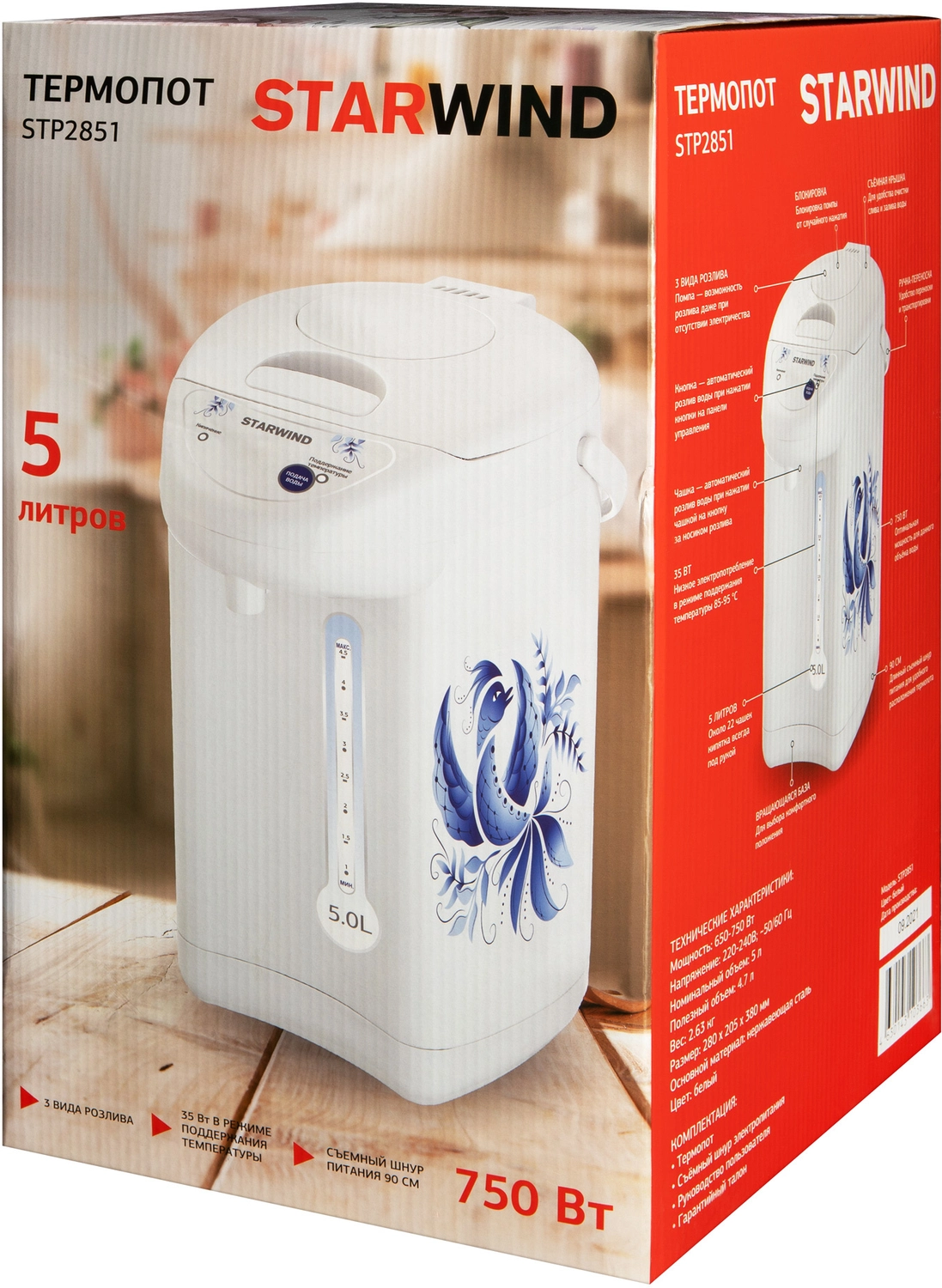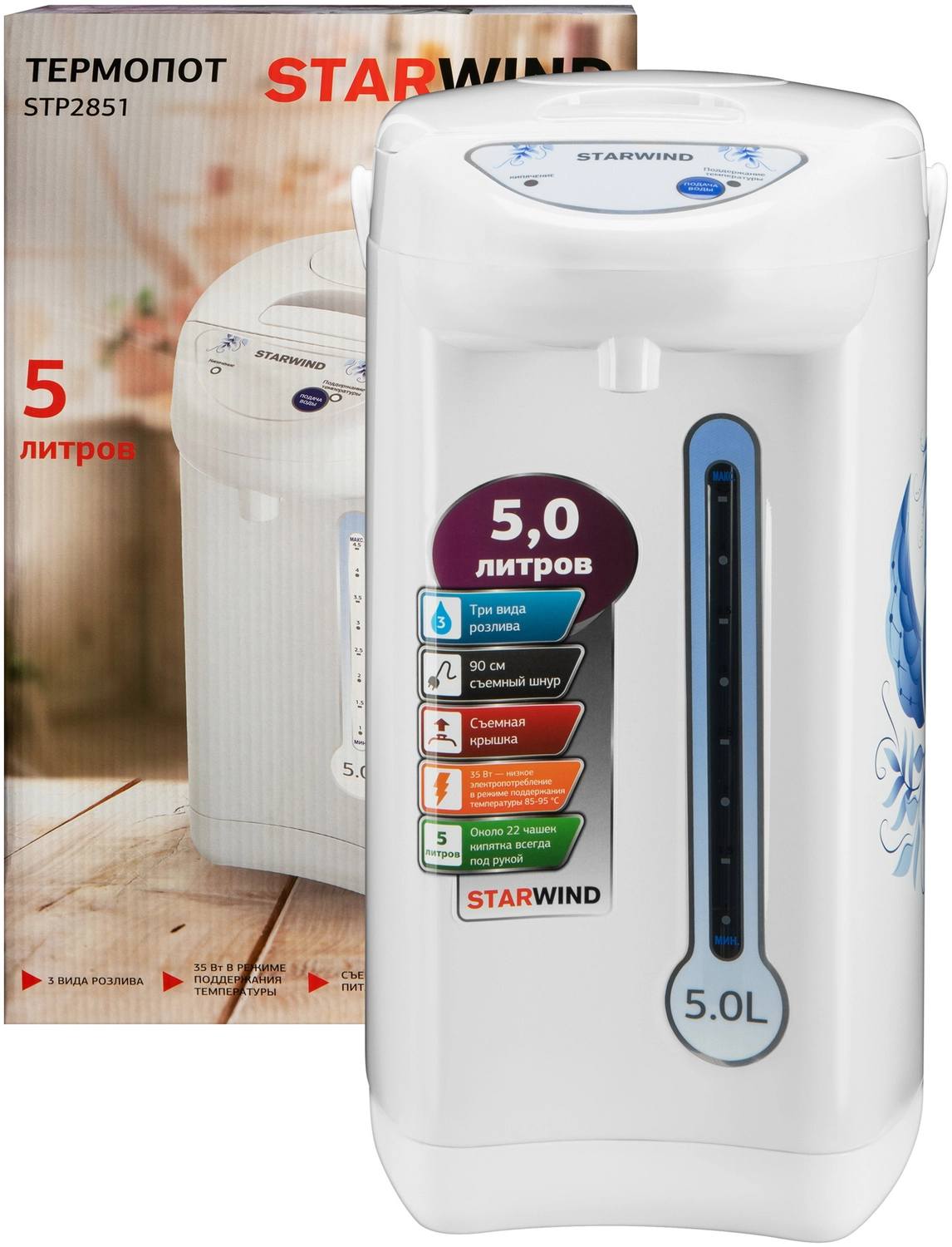 Термопот Starwind STP2851 5л. 750Вт белый/ голубой