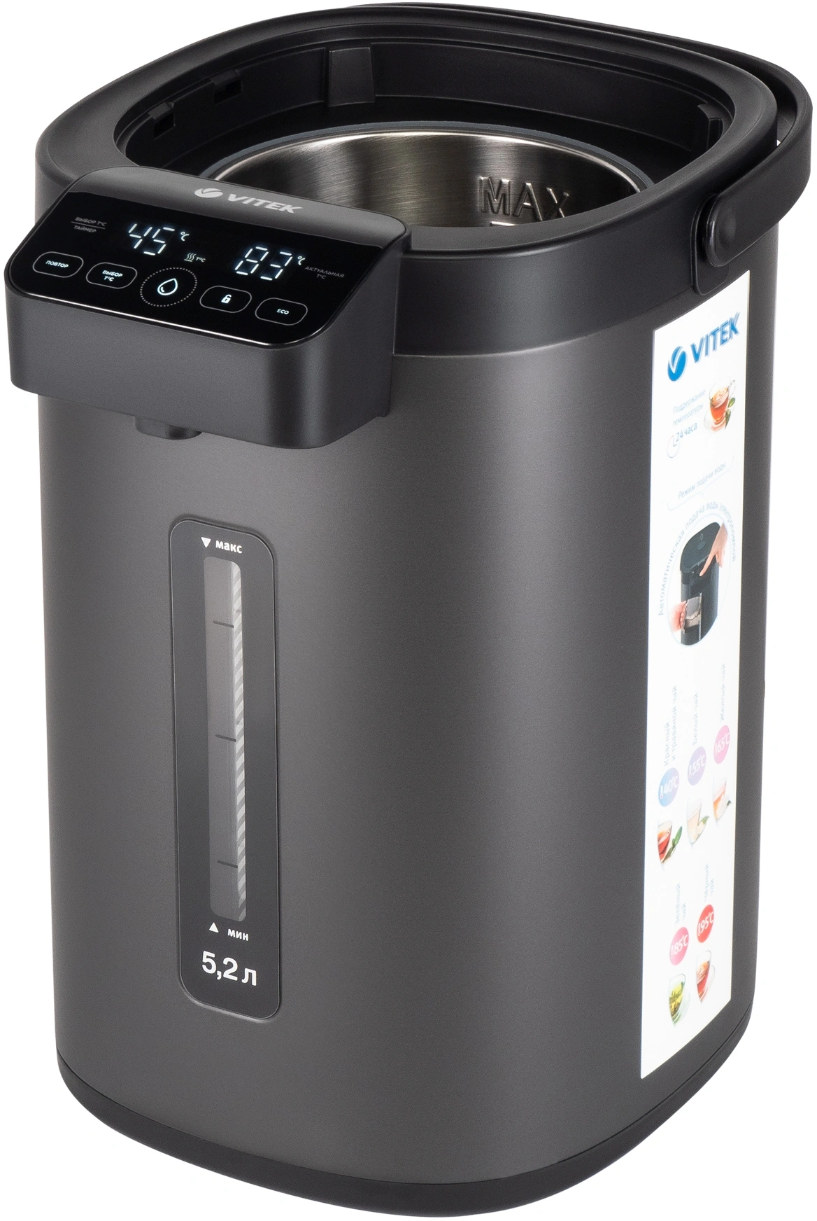 Термопот на все случаи жизни с большим функционалом, более компактный но вместительный, с плоской крышкой. Увеличенная мощность для более быстрого кипячения. Внутренняя колба из аустенитной стали 304 – более прочная к деформация и устойчивая к окислению и появлению коррозии.