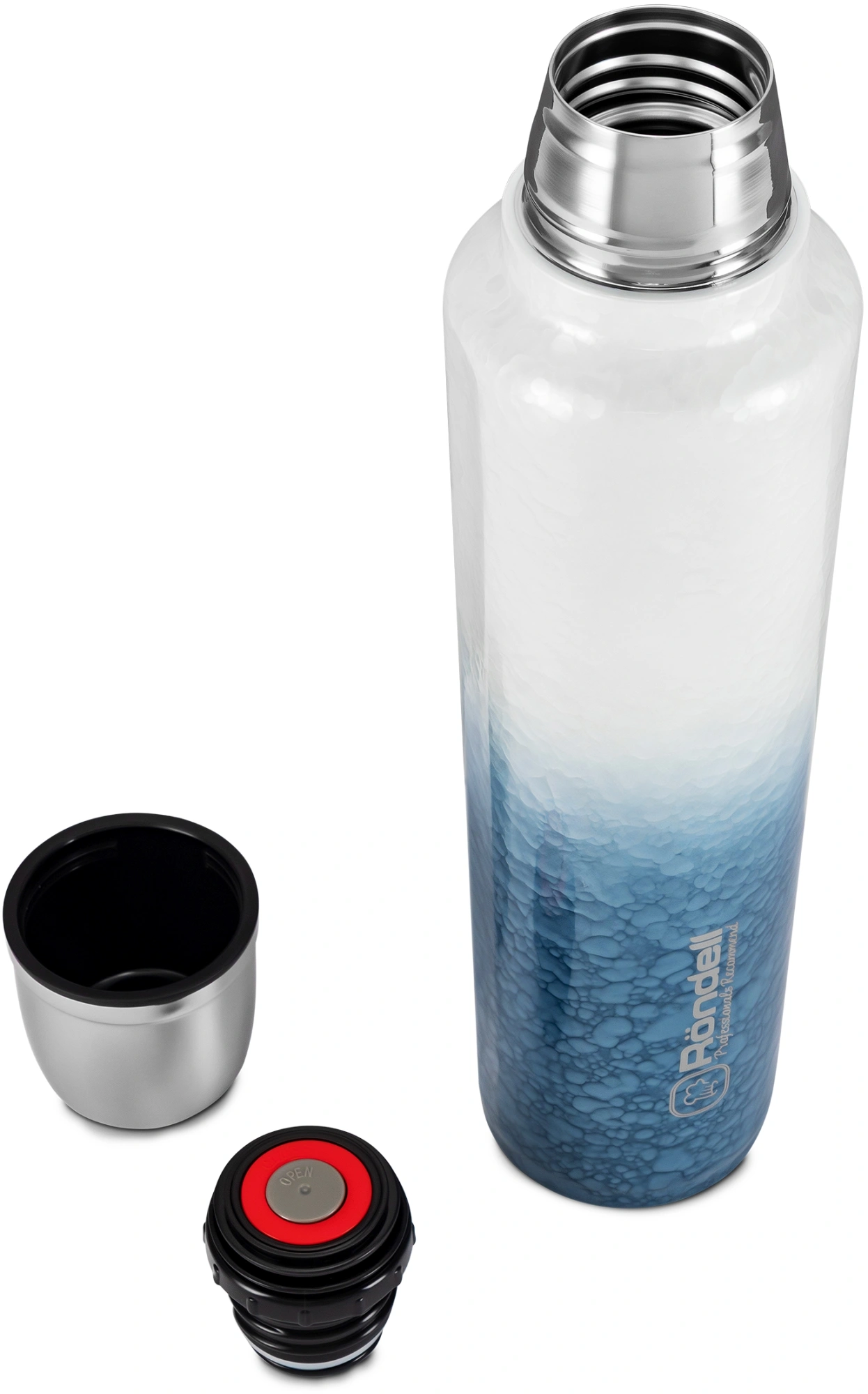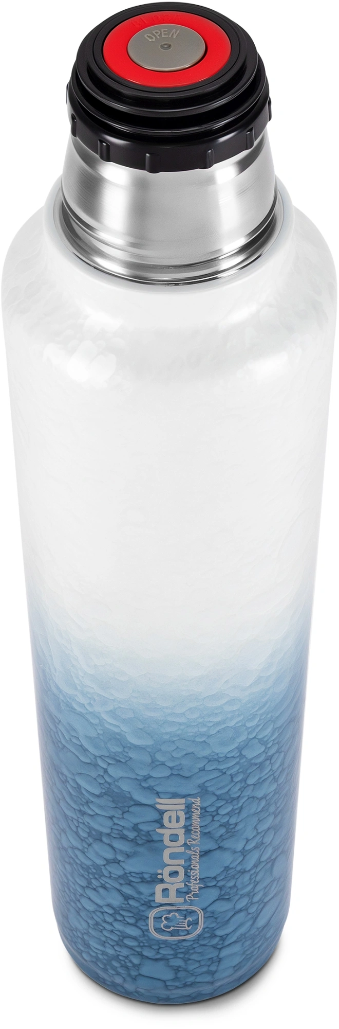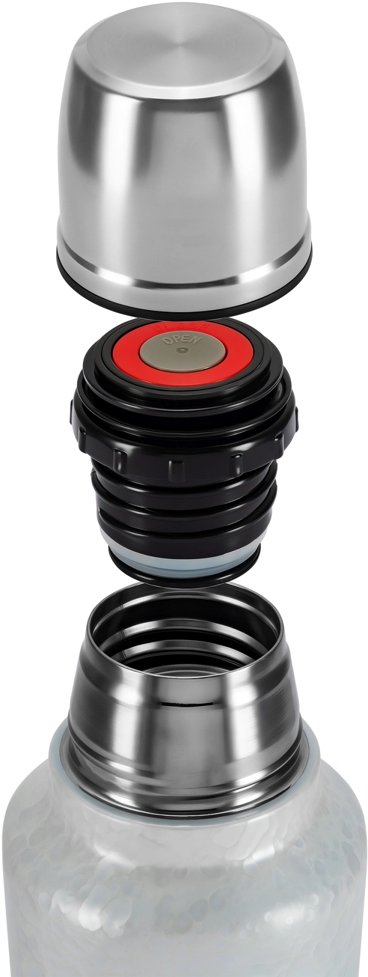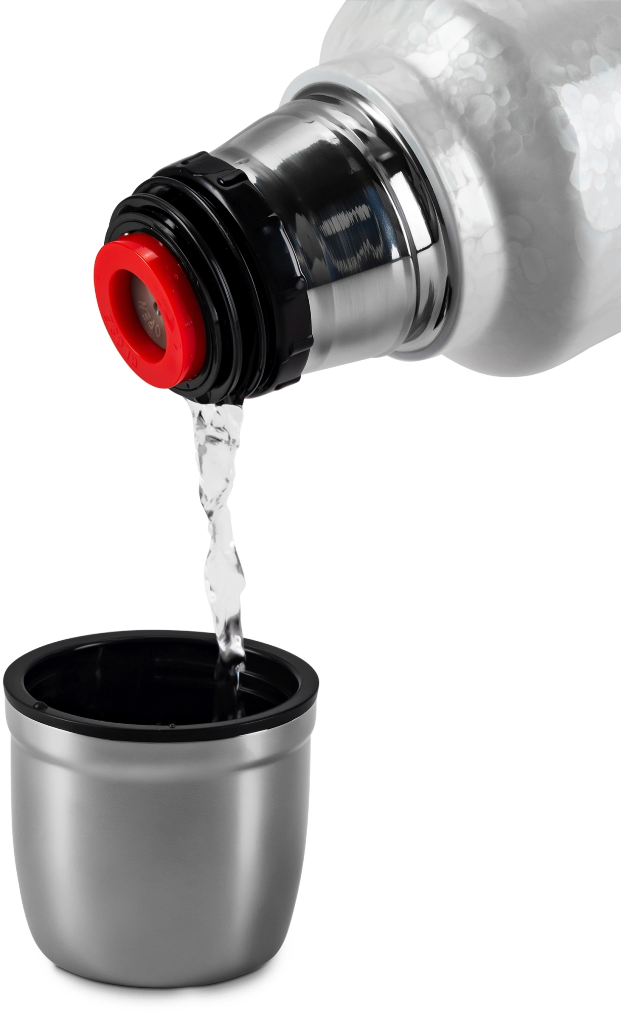 Термос Nubes с вакуумным слоем с медной металлизацией внутренней колбы сохраняет температуру: горячие до 8 ч (до 75°C) , холодные до 24 ч (до 13°C) . Крышка-стакан, открытие кнопкой без потери тепла, нескользящее прорезиненное основание обеспечивают удобство и надежность в использовании.