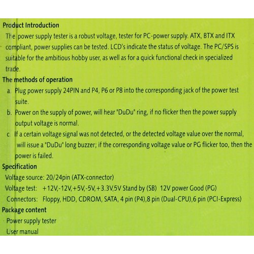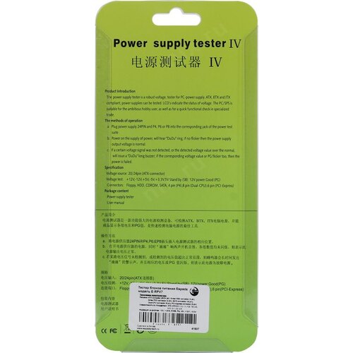 Аксессуар Espada E-RPV7 Тестер БП, ATX 20/24+4+6+8pin - цифровая индикация (41807) | НИКС Екатеринбург