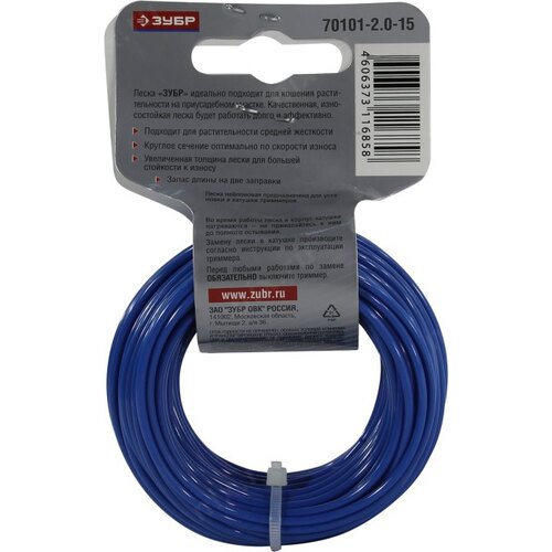 Леска для садовых триммеров Зубр 70101-2.0-15 d=2мм L=15м