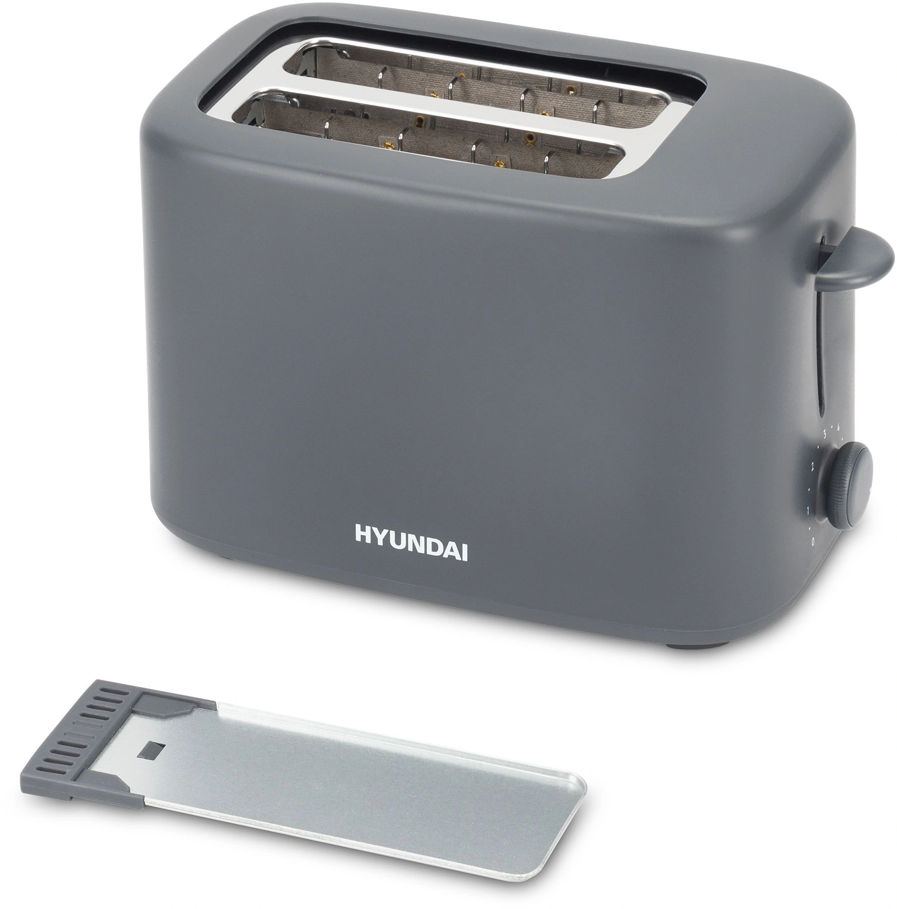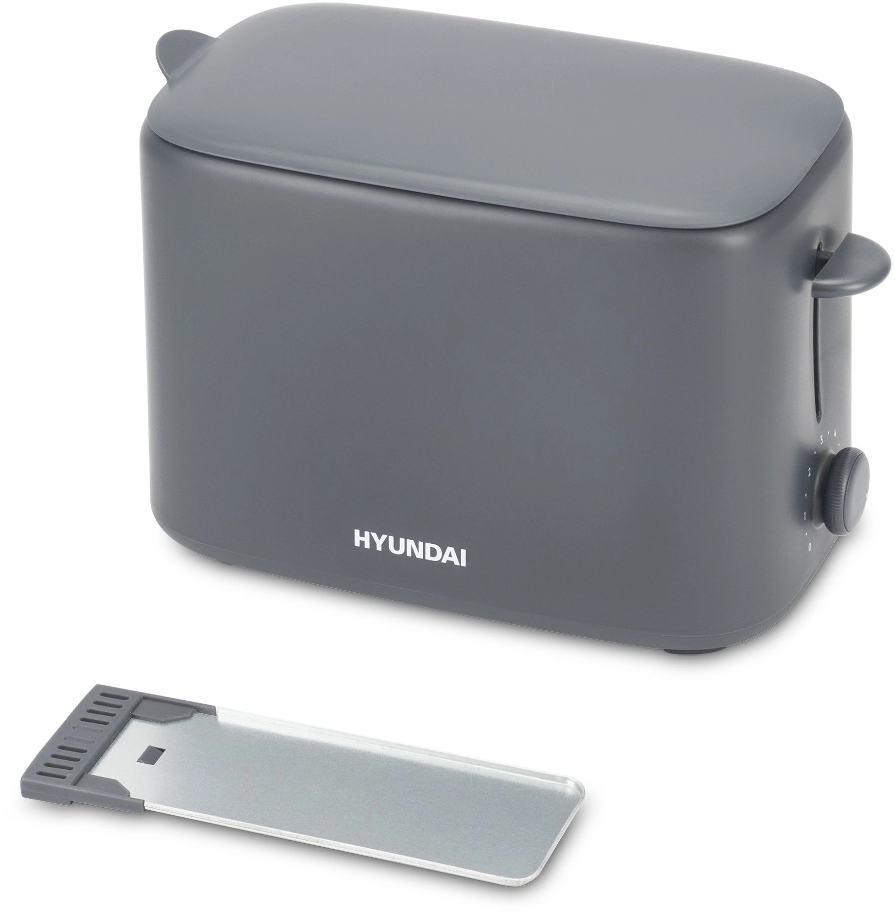 Компактный тостер со стандартными слотами для двух тостов, торцевое управление, трендовый серый цвет. Только тостер, все что нужно.