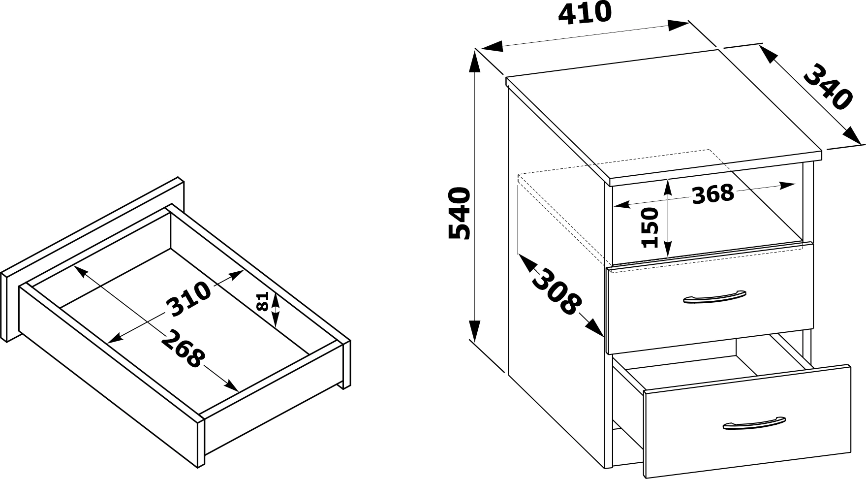 Небольшая универсальная тумба имеет открытую нишу и два выдвижных ящика. Практичный элемент для хранения канцелярских принадлежностей и документов в офисе или дома. Также тумбочку можно использовать как прикроватную.