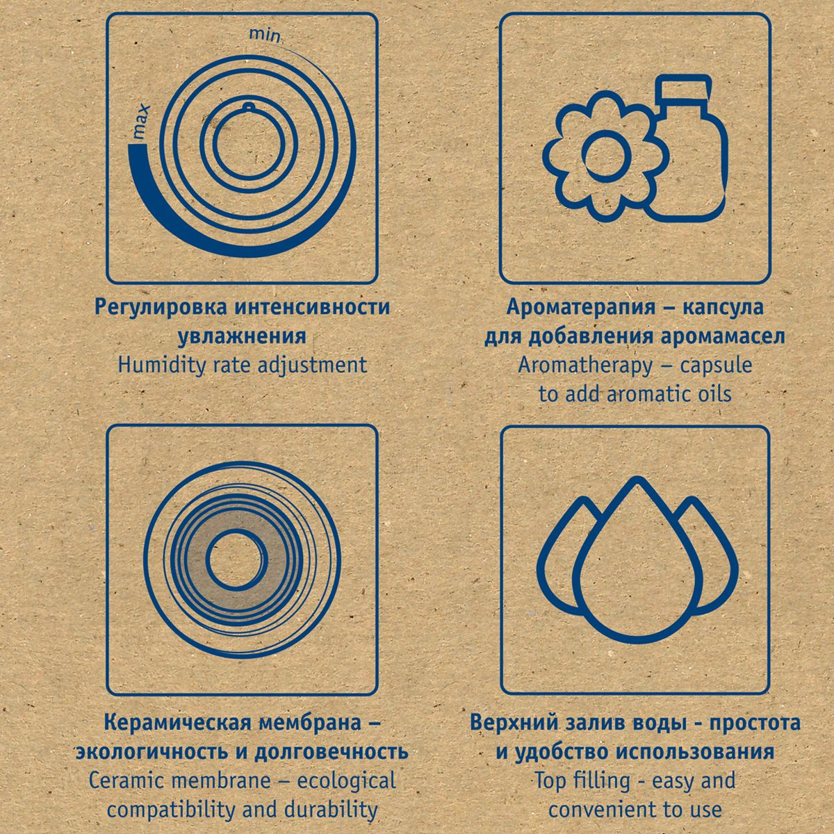 Увлажнение и ароматизация воздуха 2 в 1. Поворотный распылитель 360°. Верхний залив воды без снятия бака.