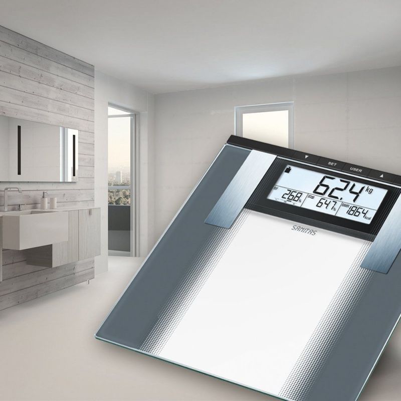 Помимо измерения массы тела, позволяют оценить содержание в организме воды, жировой, мышечной и костной ткани. Результаты измерений сохраняются в памяти для 10 пользователей. Весы автоматически включаются при касании ногами платформы и автоматически выключаются после схода с нее.
