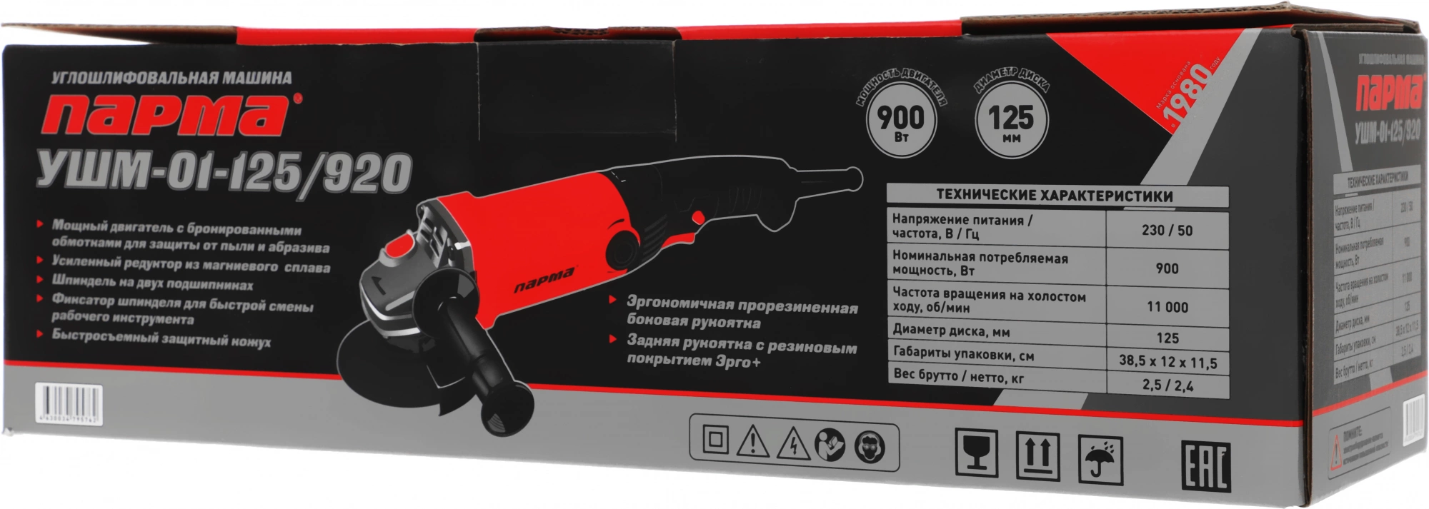 Углошлифовальная машина Парма УШМ-01-125/920 900Вт 11000об/мин рез.шпин.:M14 d=125мм (02.026.00004)