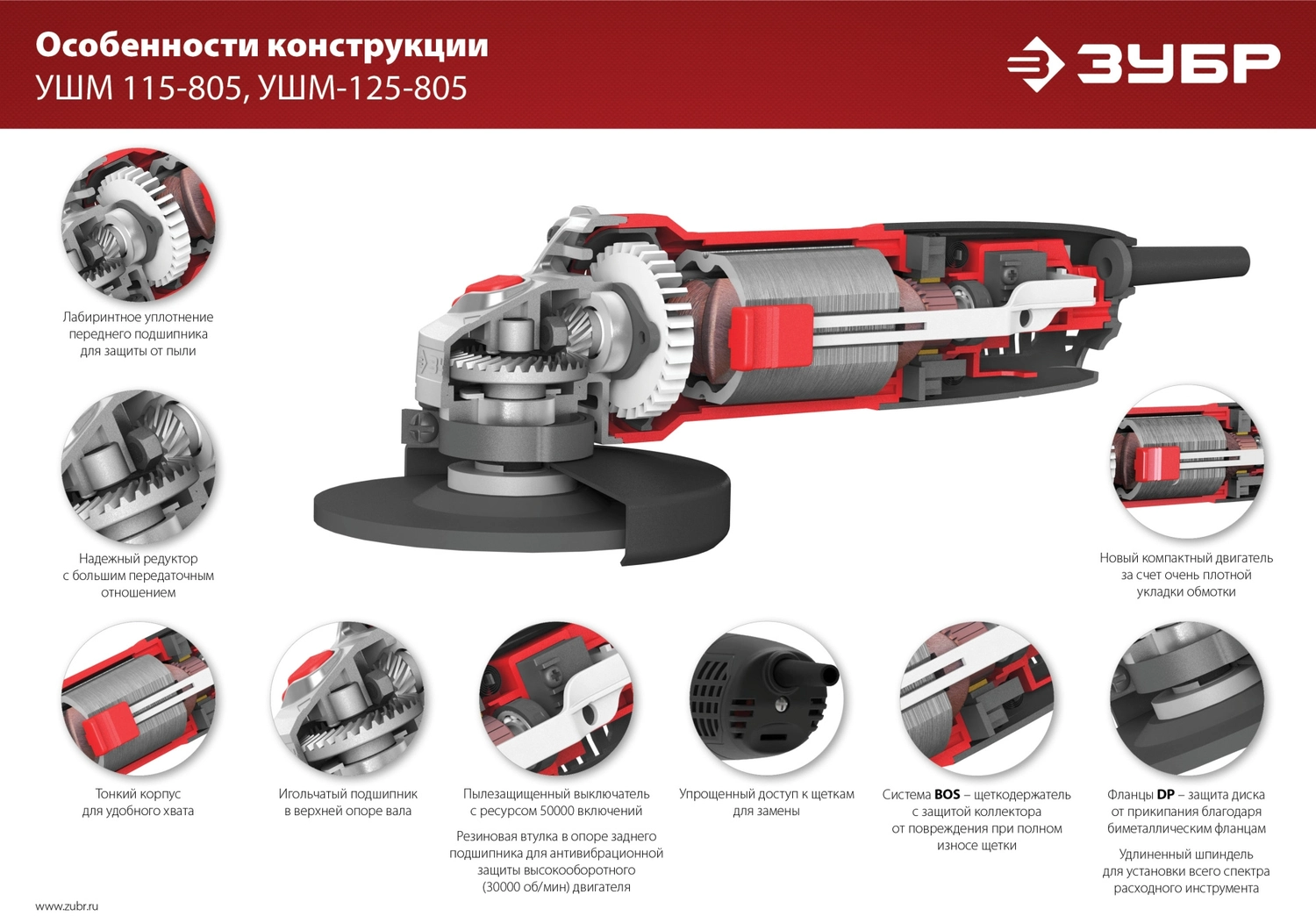 Углошлифовальная машина Зубр Мастер УШМ-125-805 800Вт 11000об/мин рез.шпин.:M14 d=125мм
