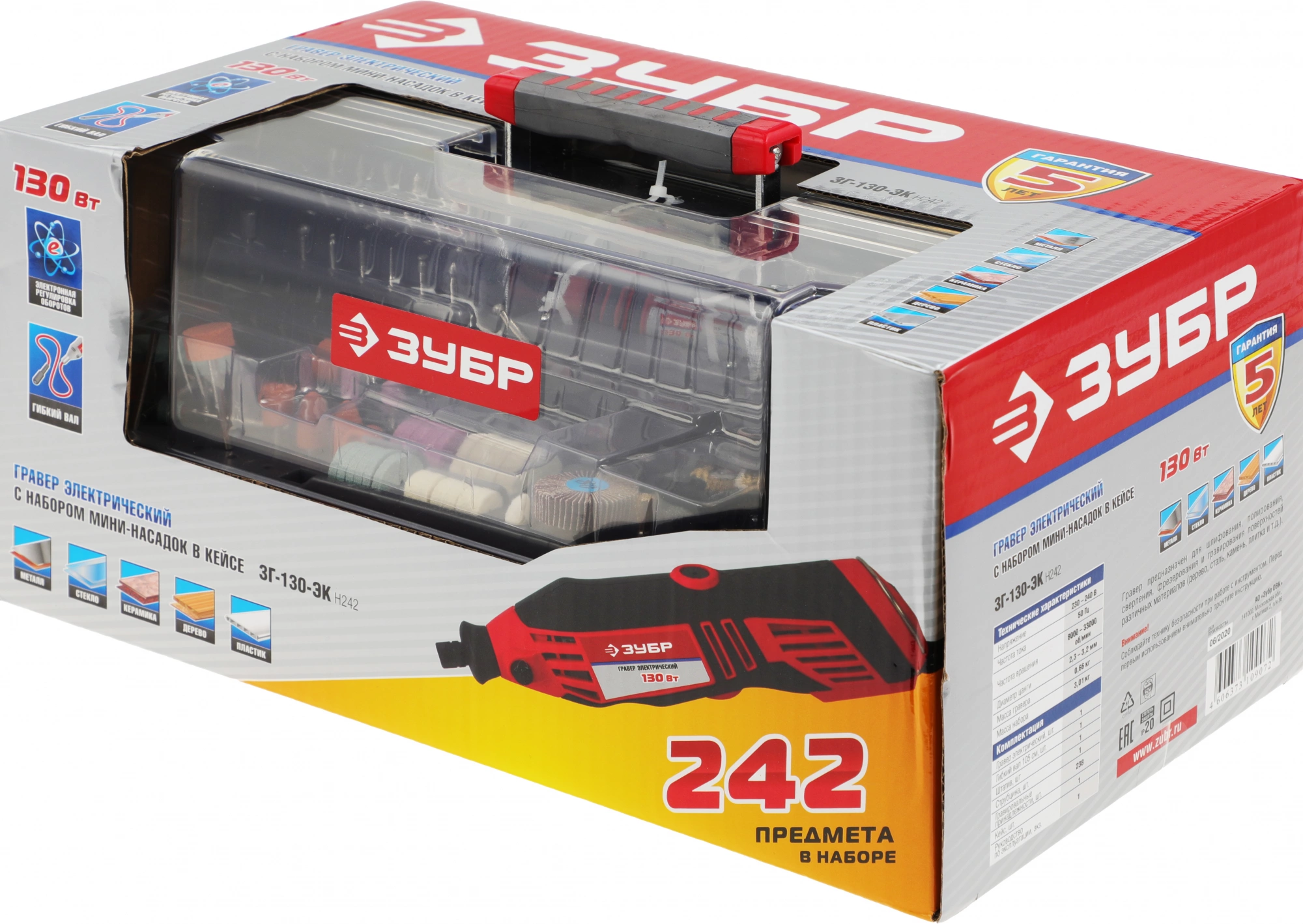Гравер Зубр ЗГ-130ЭК H242 130Вт насадок:242