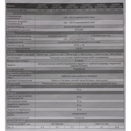 Источник бесперебойного питания Импульс ЮНИОР СМАРТ, Интерактивная, 1500 ВА / 900 Вт, Tower, Schuko, LCD, USB, USB