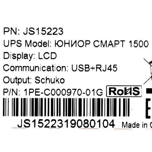 Источник бесперебойного питания Импульс ЮНИОР СМАРТ 1500 900Вт 1500ВА черный JS15223