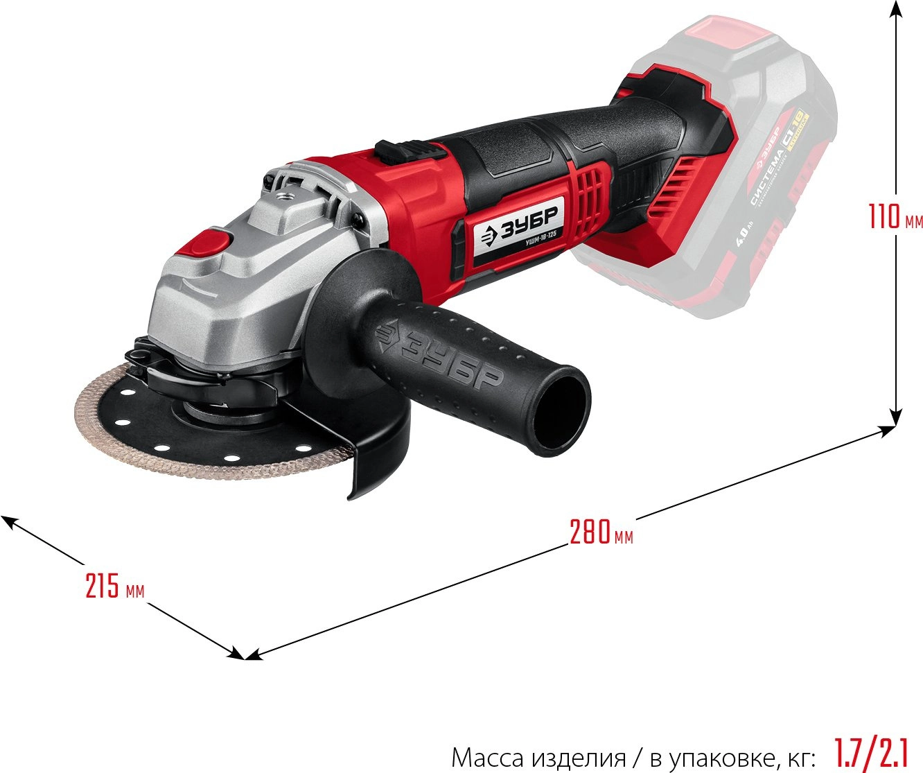 Углошлифовальная машина Зубр Мастер УШМ-18-125 10000об/мин рез.шпин.:M14 d=125мм