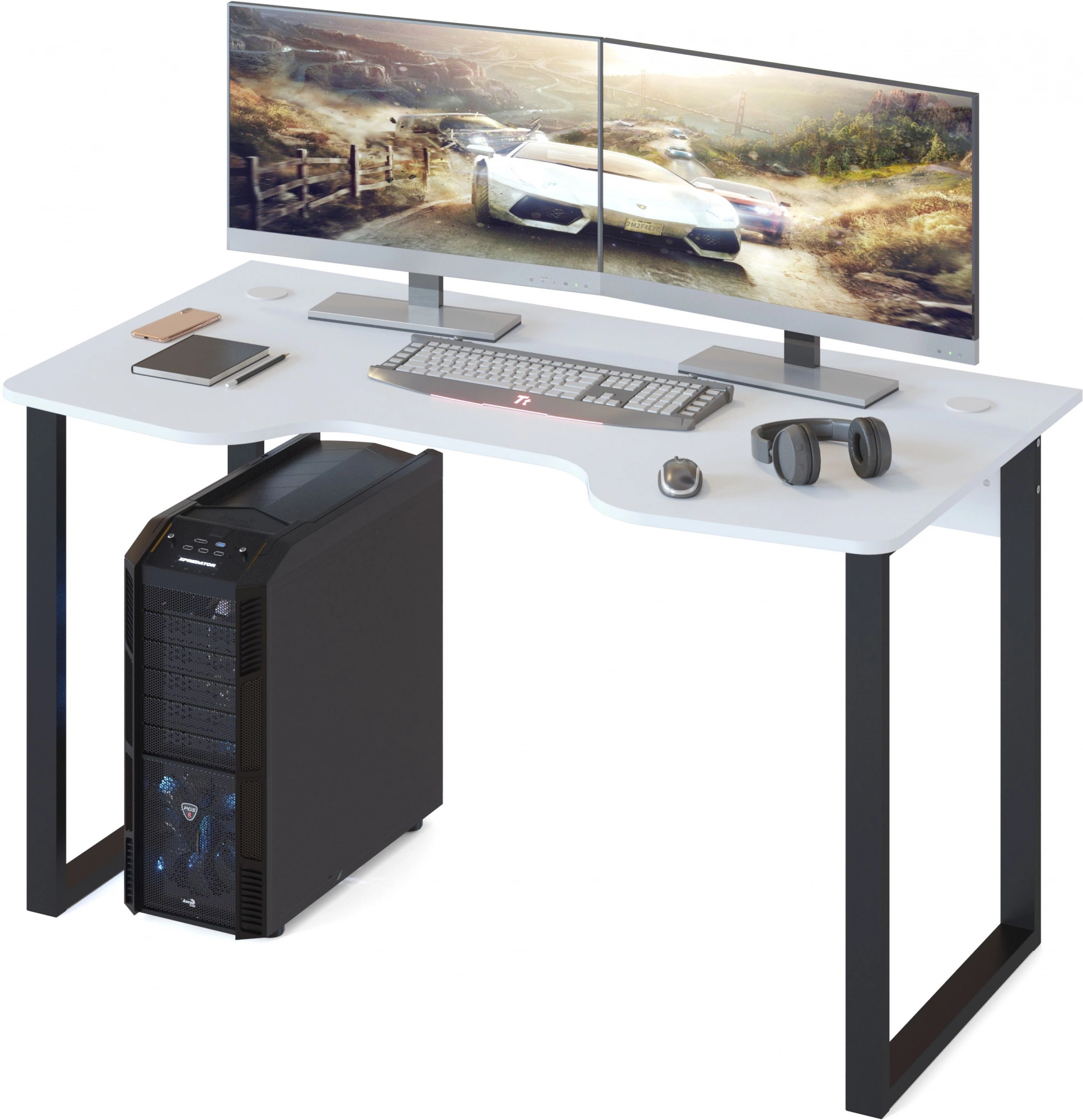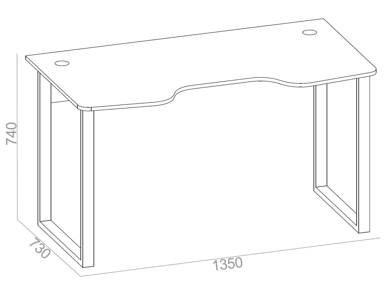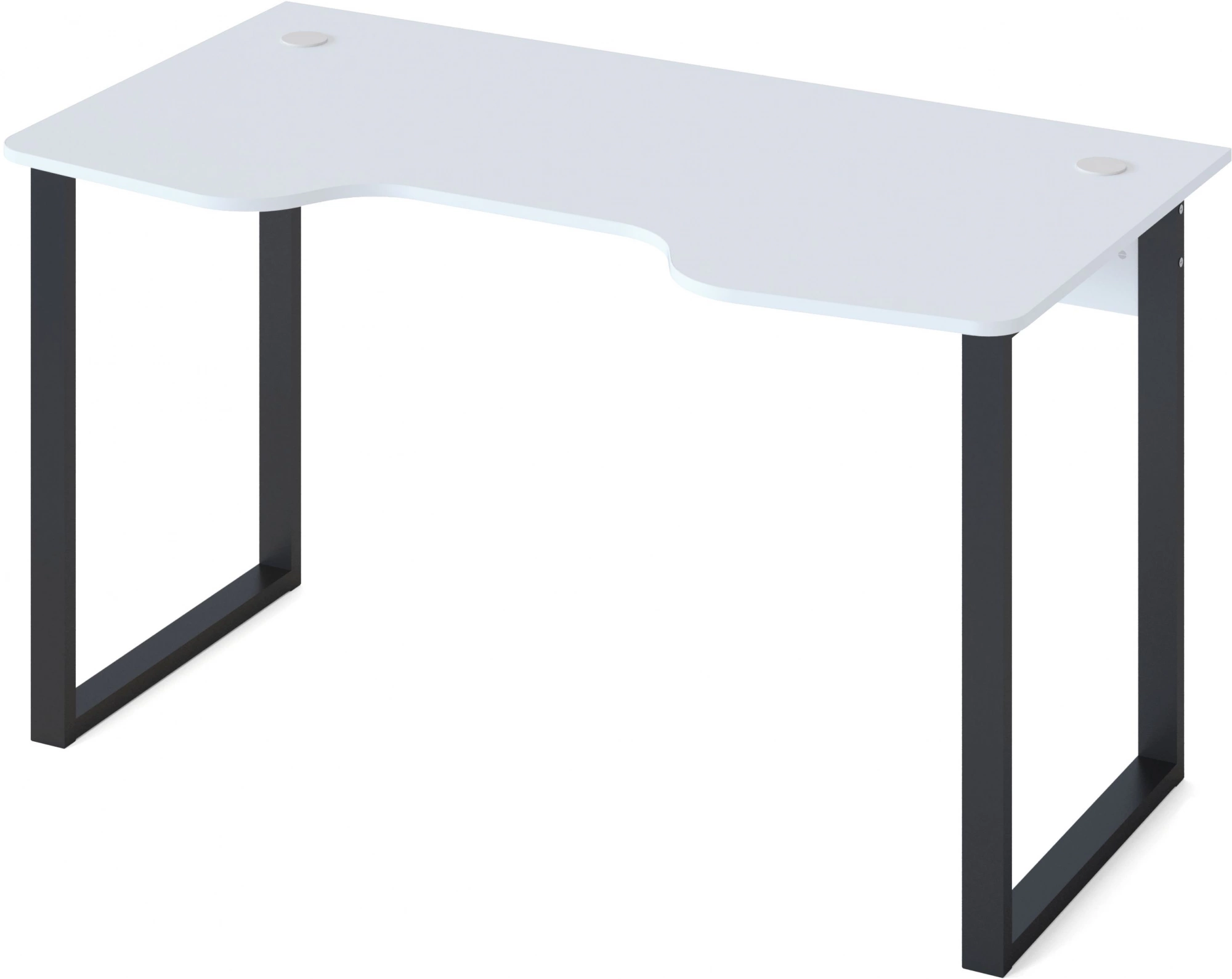 Столешница с анатомическим вырезом, что поможет снять нагрузку со спины и позволит с комфортом проводить время за компьютером при длительном игровом процессе. В столешнице предусмотрены два отверстия с заглушками для вывода проводов