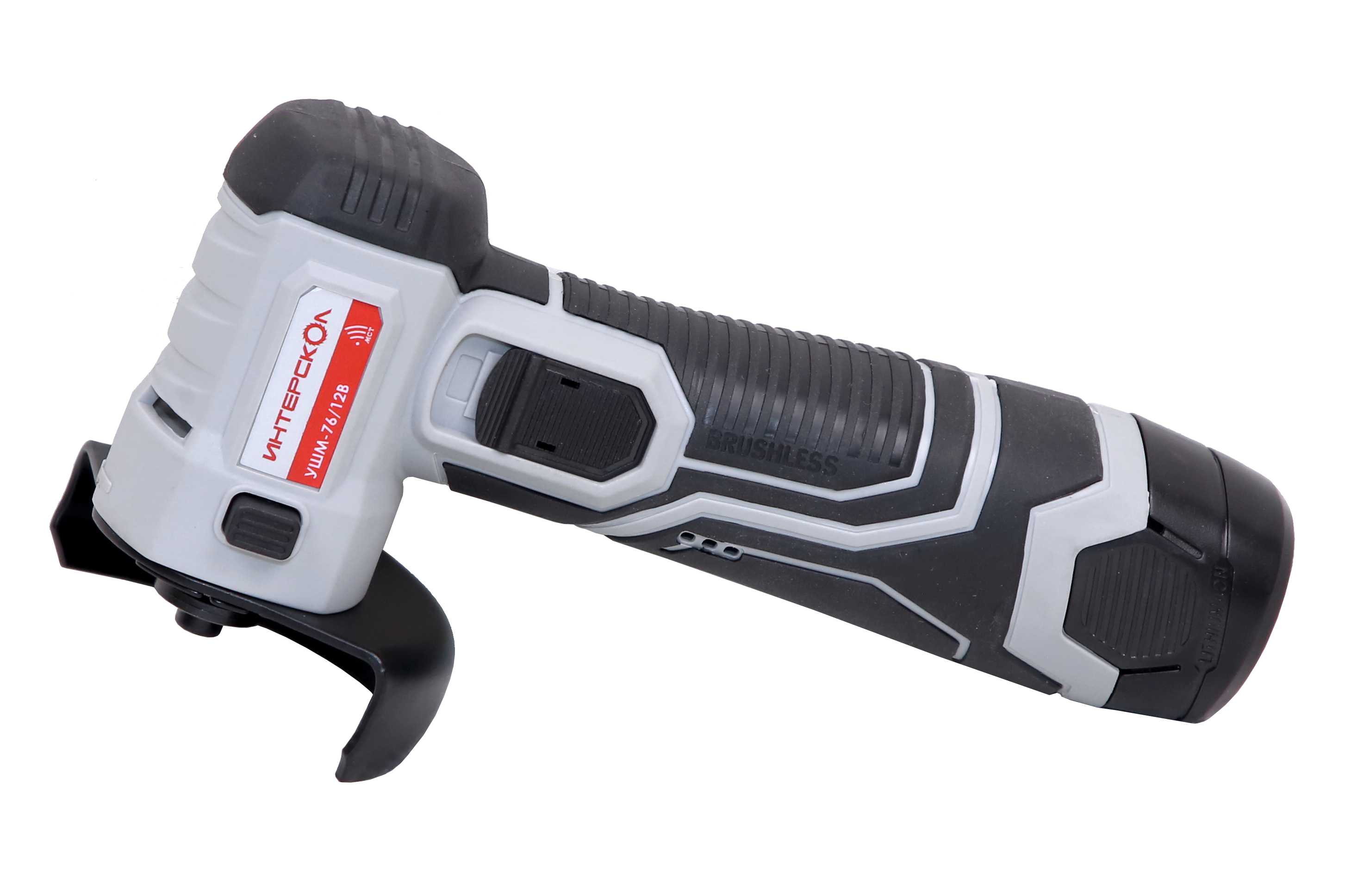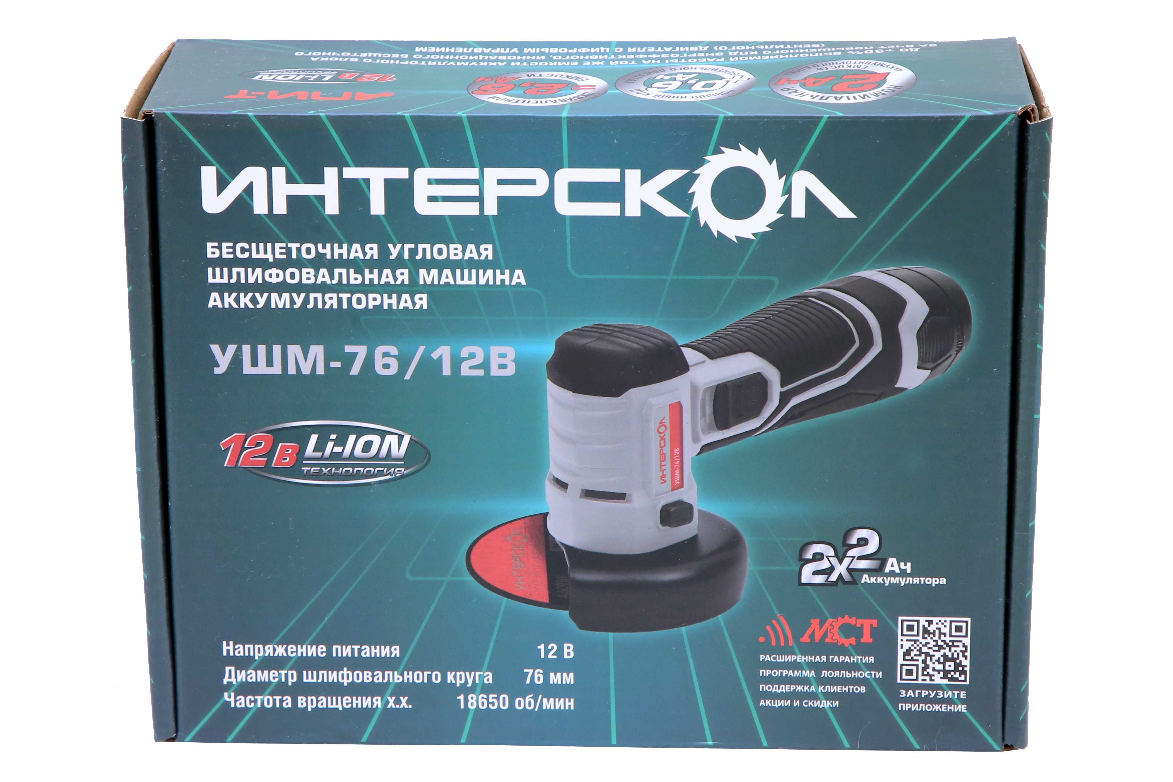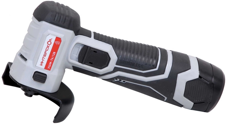 Бесщеточная аккумуляторная угловая шлифмашина (2 аккум. 2,0Ач, ЗУ) УШМ-76/12В ИНТЕРСКОЛ 644.2.2.70
