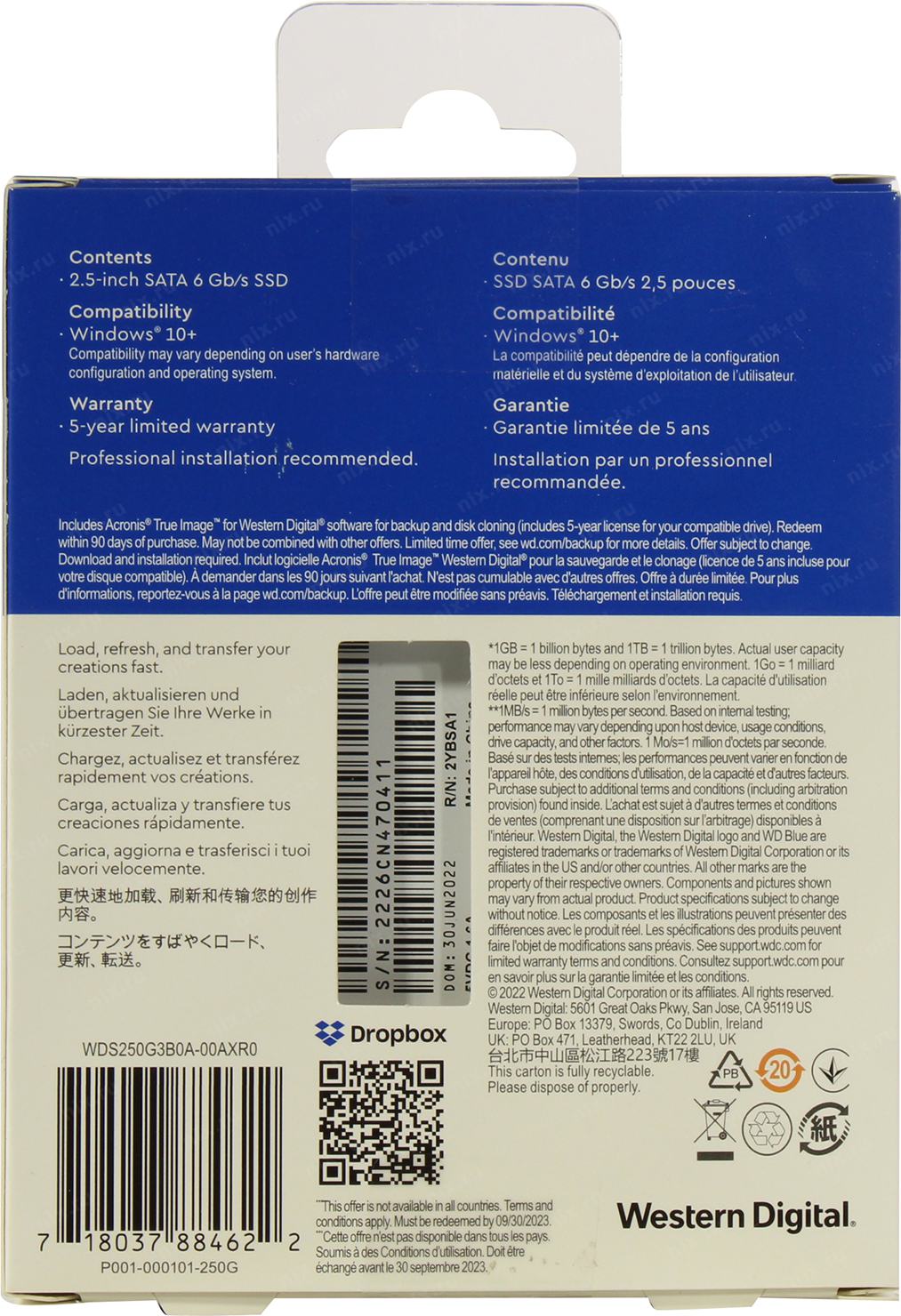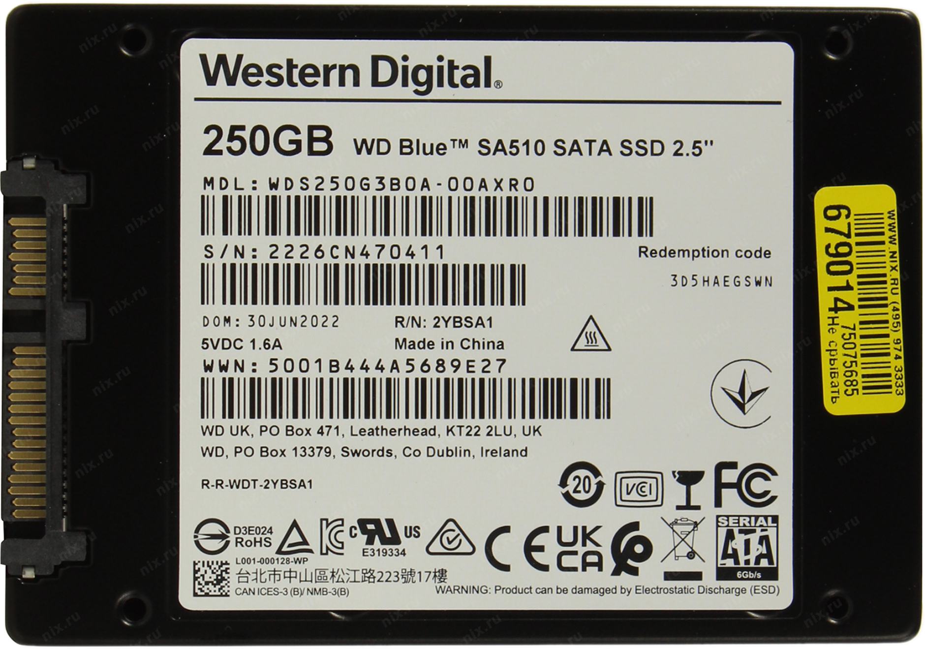 Твердотельный накопитель SSD WD Blue WDS250G3B0A 250GB 2.5" Client SATA 6Gb/s Retail (-00BNC0) (884622) (10)